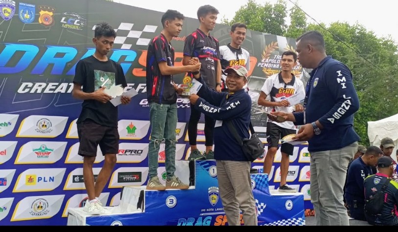 Disela balapan drag race yang memicu adrenalin, para pemenang drag bike langsung dibagikan tropi dan uang pembinaan dari pihak panitia.