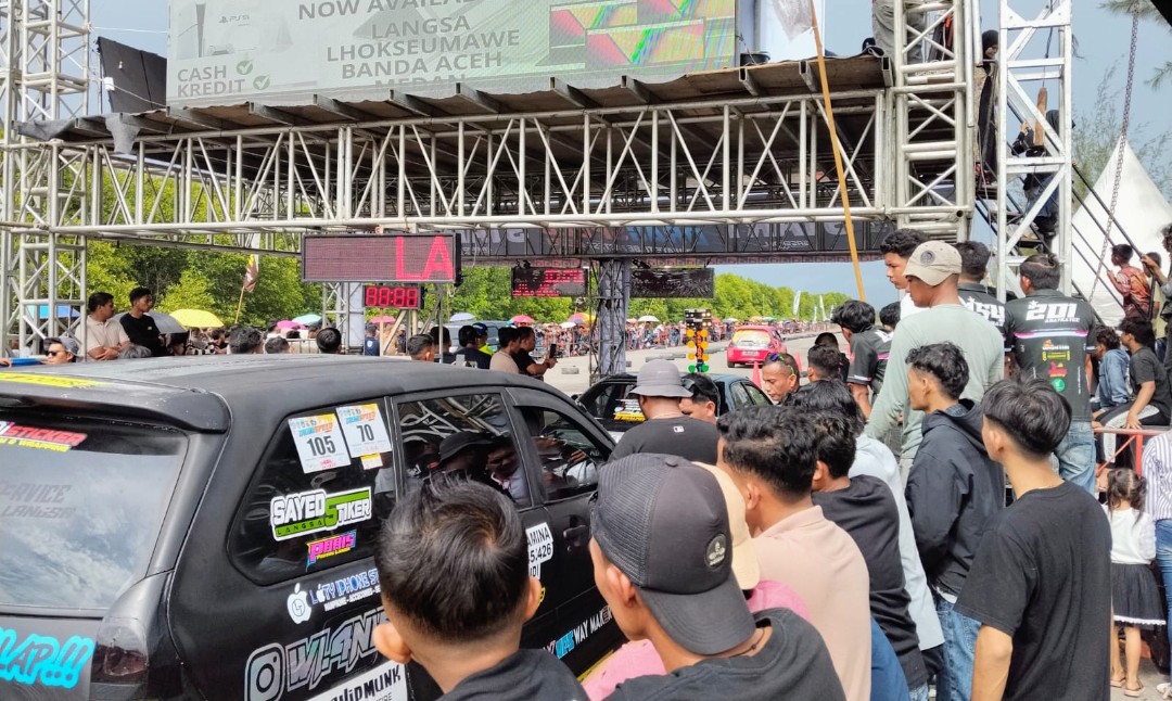 Kota Langsa – Masyarakat Kota Langsa maupun luar daerah membludak untuk menyaksikan balapan Drag Race Car di Event Drag Speed Series 2 yang dilaksanakan Ikatan Motor Indonesia (IMI) Kota Langsa pada hari kedua, di Sirkuit Air Strip, Kuala Langsa, Minggu, 16 November 2025.