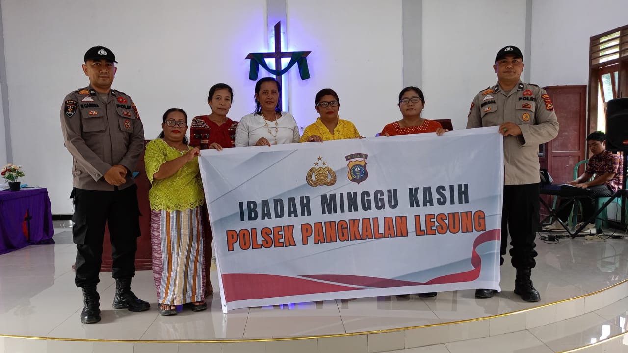 A1news.co.id | RIAU || Polsek Pangkalan Lesung melaksanakan kegiatan Ibadah Minggu Kasih di Gereja Methodis Efrata Km 40, Kelurahan Pangkalan Lesung, Kecamatan Pangkalan Lesung, pada Minggu (16/11/2025). Kegiatan ini dipimpin oleh KSPK III Polsek Pangkalan Lesung, Aipda Roni Candra, bersama personel lainnya.