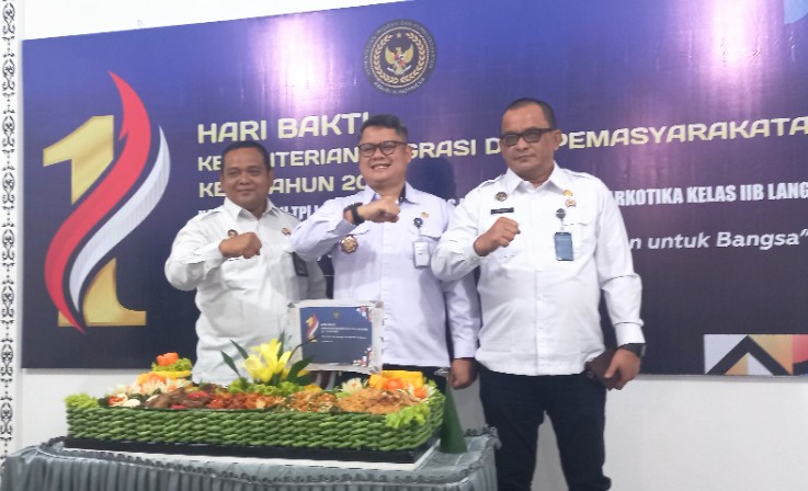 Kota Langsa – Kantor Imigrasi (Kanim) Kelas II TPI Langsa, Lapas Kelas IIB Langsa, dan Lapas Narkotika Kelas IIB Langsa menggelar tasyakuran potong tumpeng dan doa bersama memperingati Hari Bakti Kementerian Imigrasi dan Pemasyarakatan (Kemenimipas) ke-1.