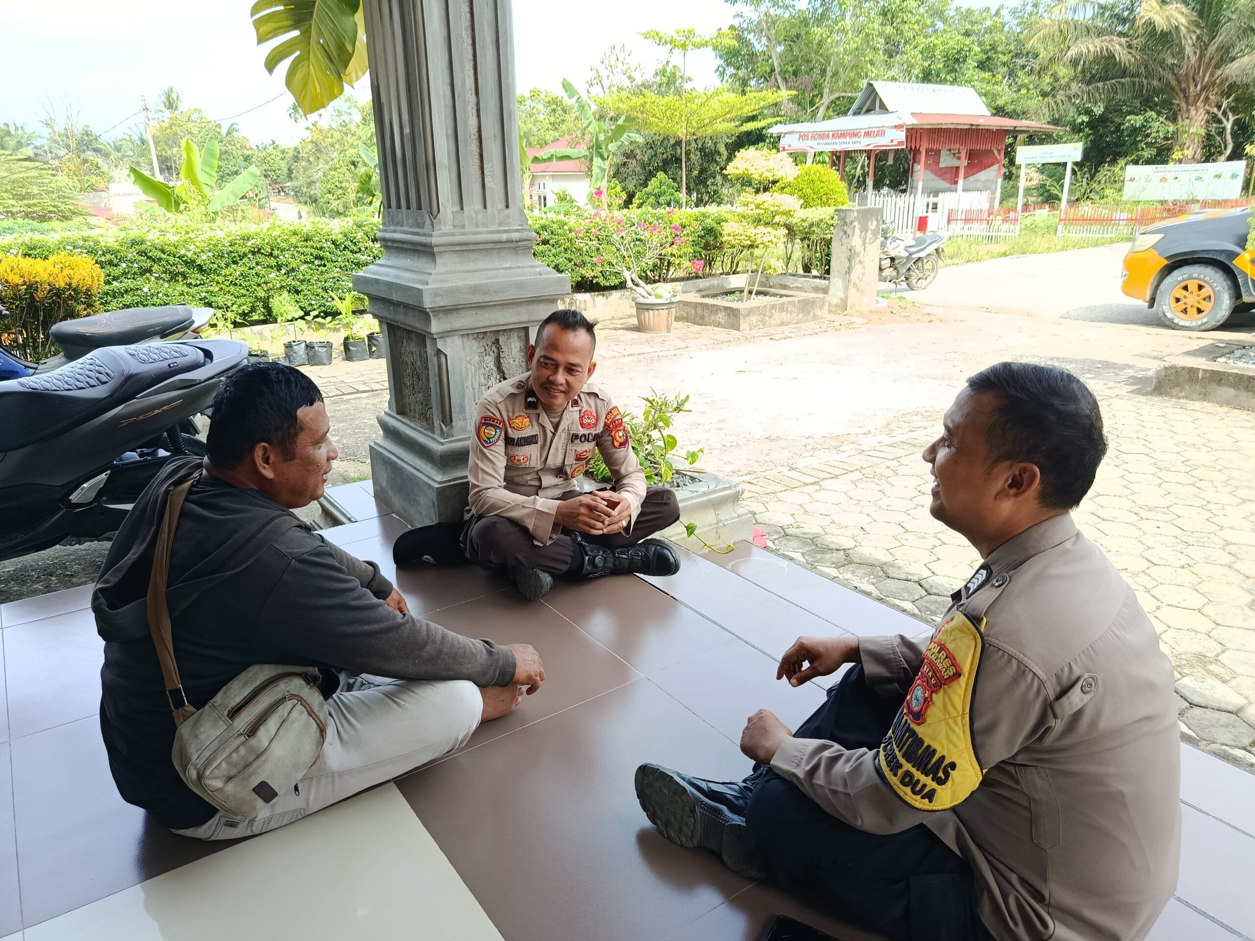 Sambang dilakukan di kediaman Sdr. Sudir, tokoh masyarakat setempat, dengan penyampaian himbauan agar masyarakat dapat menjaga lingkungan masing-masing, tidak terpengaruh informasi bohong atau hoaks, serta melaporkan setiap gangguan keamanan kepada kepolisian. Petugas juga menekankan peran tokoh masyarakat dalam mengajak warga menjaga situasi tetap aman dan kondusif.