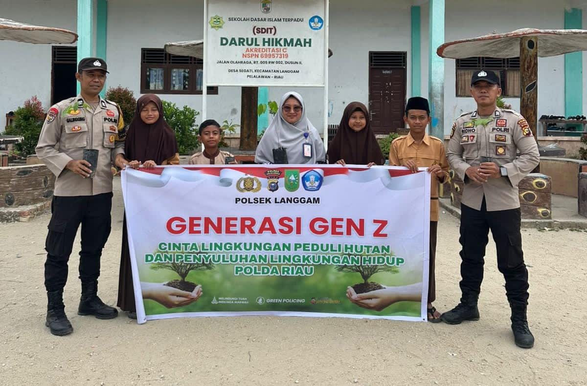 A1news.co.id | RIAU || Polsek Langgam Polres Pelalawan melaksanakan kegiatan penanaman bibit pohon sebagai bentuk dukungan terhadap Program Kapolda Riau tahun 2025 terkait penghijauan dan pelestarian lingkungan. Kegiatan berlangsung pada Kamis (27/11/2025) sekitar pukul 09.45 WIB di halaman SDIT Darul Hikmah, Desa Segati.