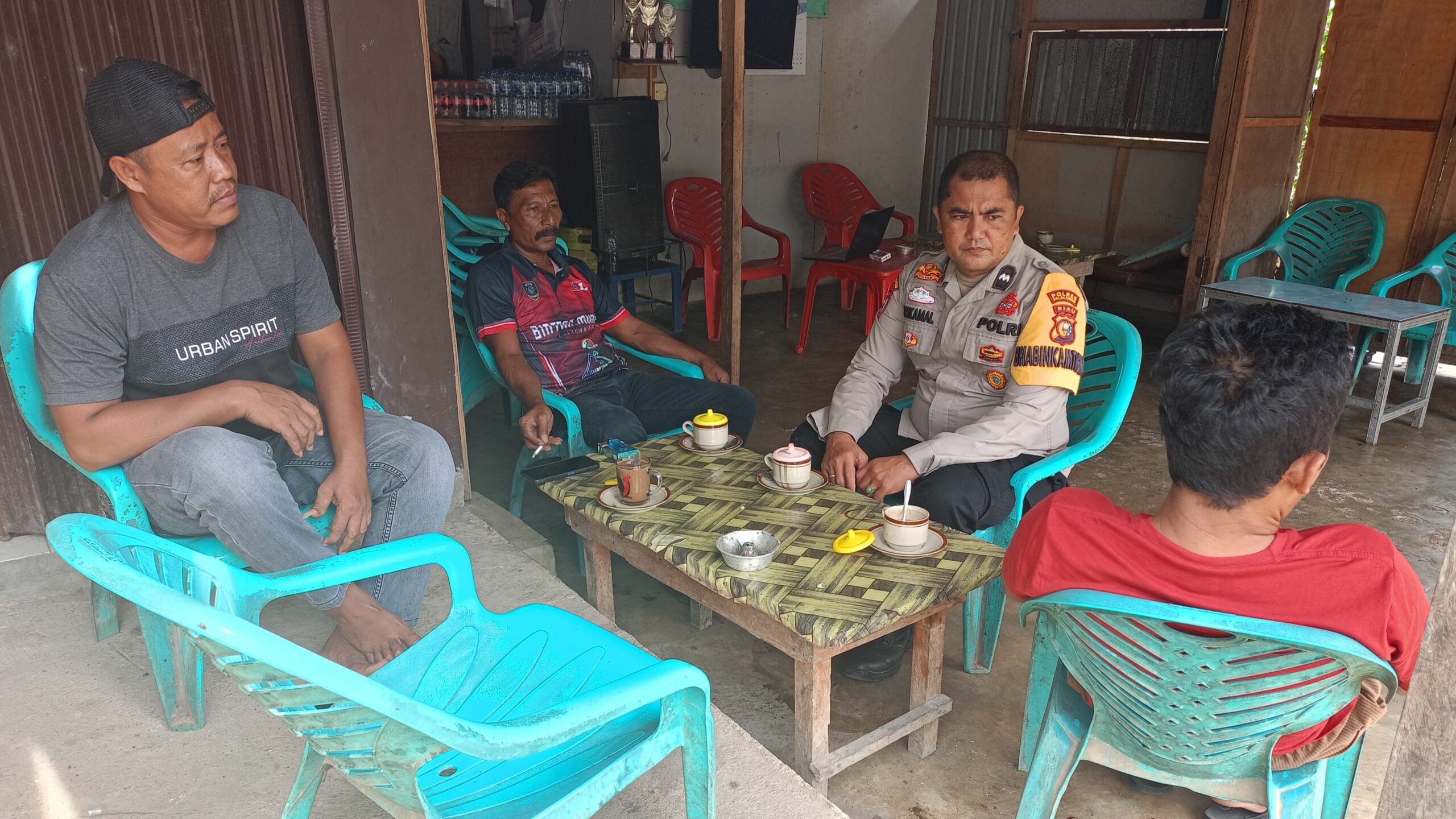 Dalam kegiatan tersebut, Aipda Nurkamal terlihat menyambangi tokoh pemuda, Sabban, untuk memberikan himbauan agar selalu menjaga keamanan dan ketertiban masyarakat (Harkamtibmas).