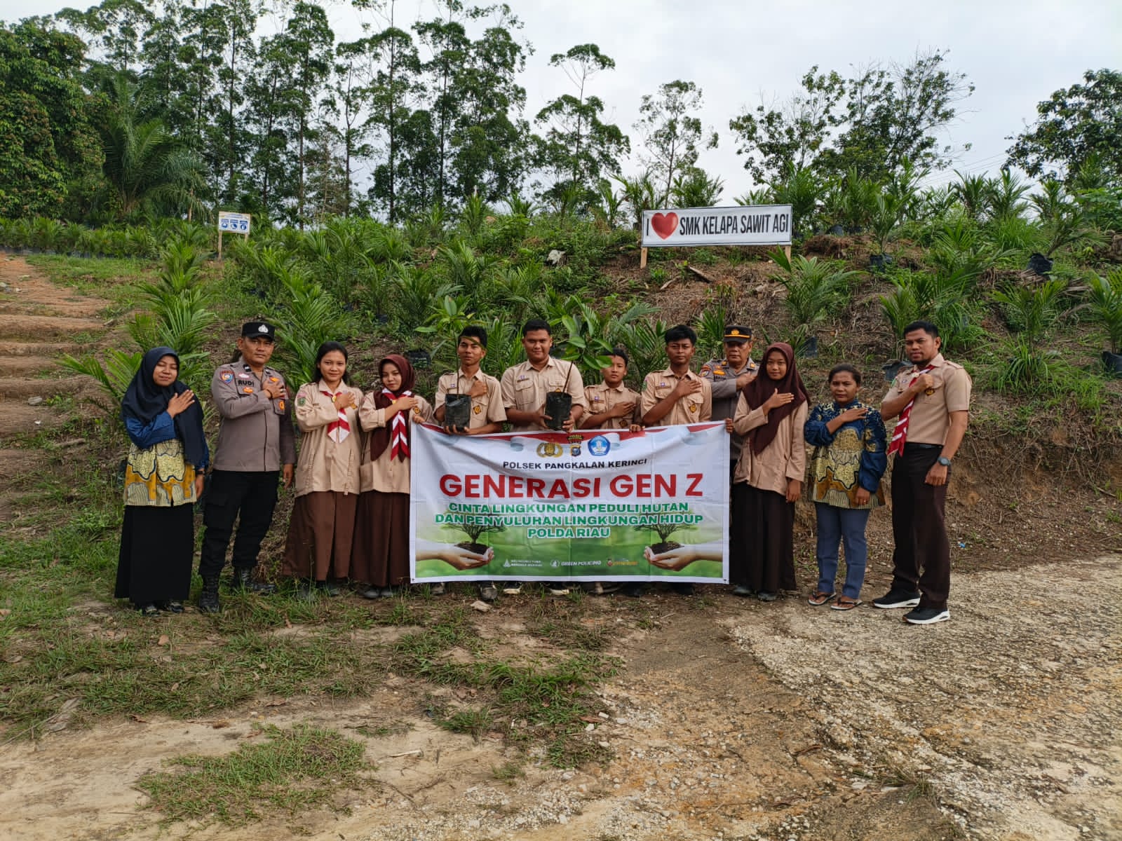 A1news.co.id | RIAU || Upaya penghijauan kembali dilakukan jajaran Polri di Kabupaten Pelalawan. Pada Rabu pagi, 3 Desember 2025, personel Polsek Pangkalan Kerinci menanam bibit pohon manggis dan durian di lingkungan SMK Kelapa Sawit Arsya Ganeeta Indonesia, Kelurahan Pangkalan Kerinci Barat, Kecamatan Pangkalan Kerinci.