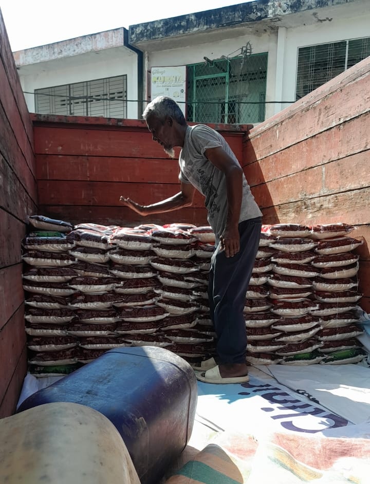 Bantuan tersebut dari para donatur yang di percayakan kepada Yayasan kita, saat ini ada dua truk yang berisikan beras dan sembako lainnya yang dibawa melalui meulaboh – Geumpang menuju Pemukiman Pameu Rusip Antara.