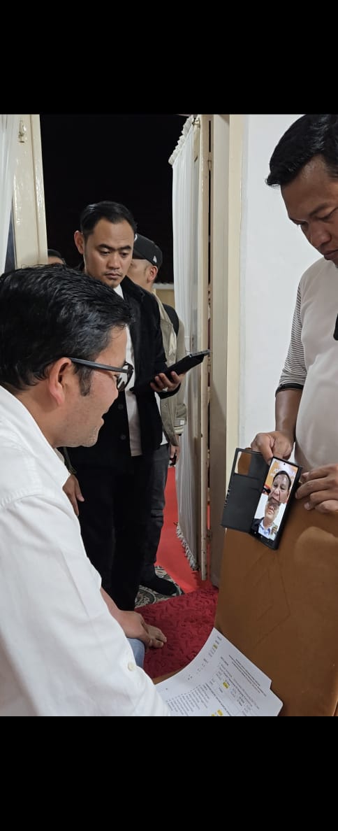 A1news.co.id|Takengon – Masih dalam suasana malam di tengah penanganan bencana hidrometeorologi hari ke-13, Bupati Aceh Tengah, Drs. Haili Yoga, M.Si, melakukan komunikasi langsung melalui video call dengan Presiden Republik Indonesia, Prabowo Subianto, Minggu malam (07/12/2025) dari Pendopo Bupati Aceh Tengah. Sambungan tersebut dilakukan menggunakan telepon Letkol Teddy Indra Wijaya selaku Sekretaris Kabinet.