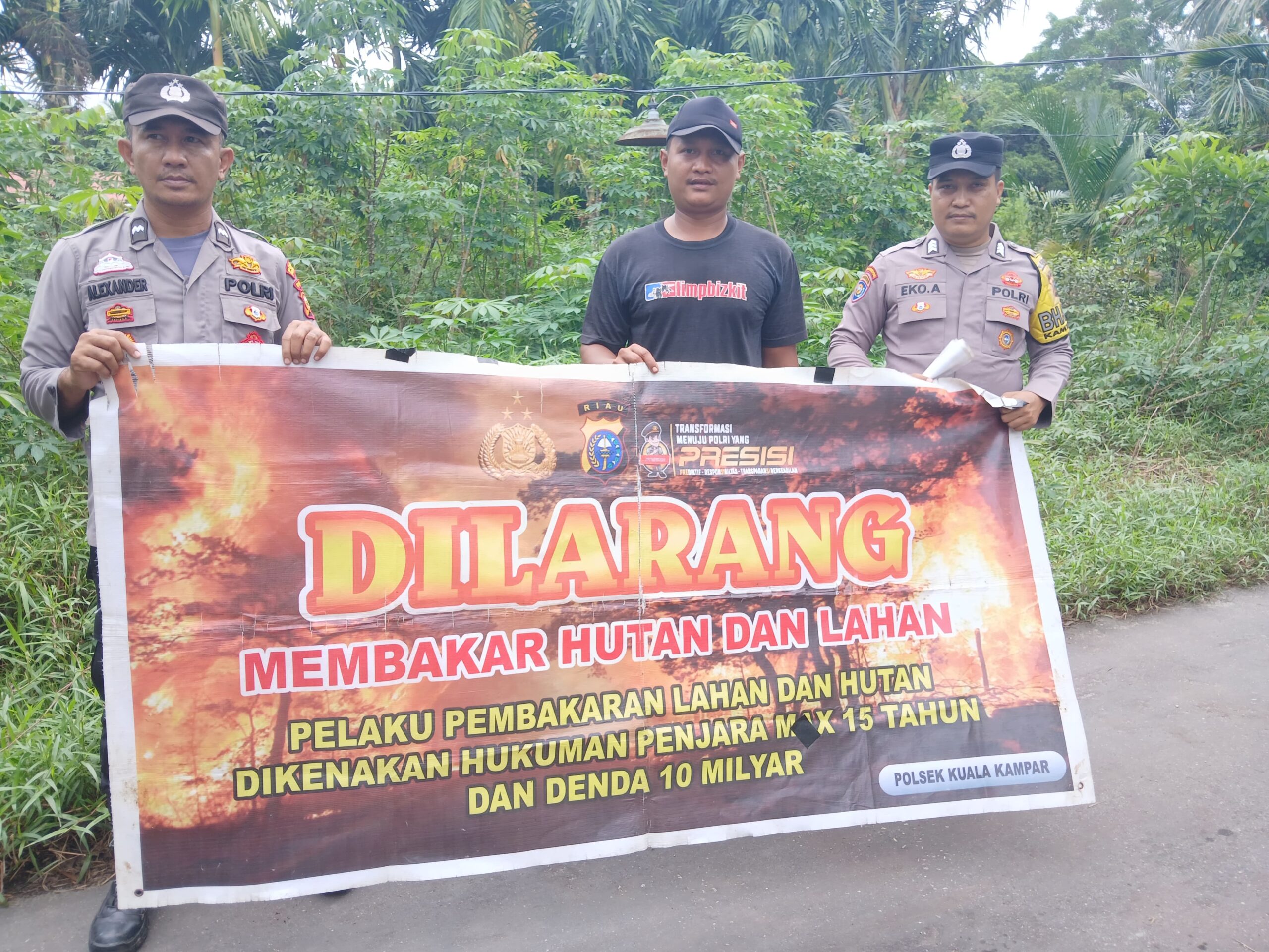 Kegiatan dipimpin Ps. Ka SPKT III, Aipda Yogi Alexander, bersama personel Polsek Kuala Kampar. Mereka menyampaikan secara langsung kepada warga mengenai larangan membuka hutan dan lahan dengan cara membakar, serta mengingatkan potensi bahaya dan konsekuensi hukum dari praktik tersebut.