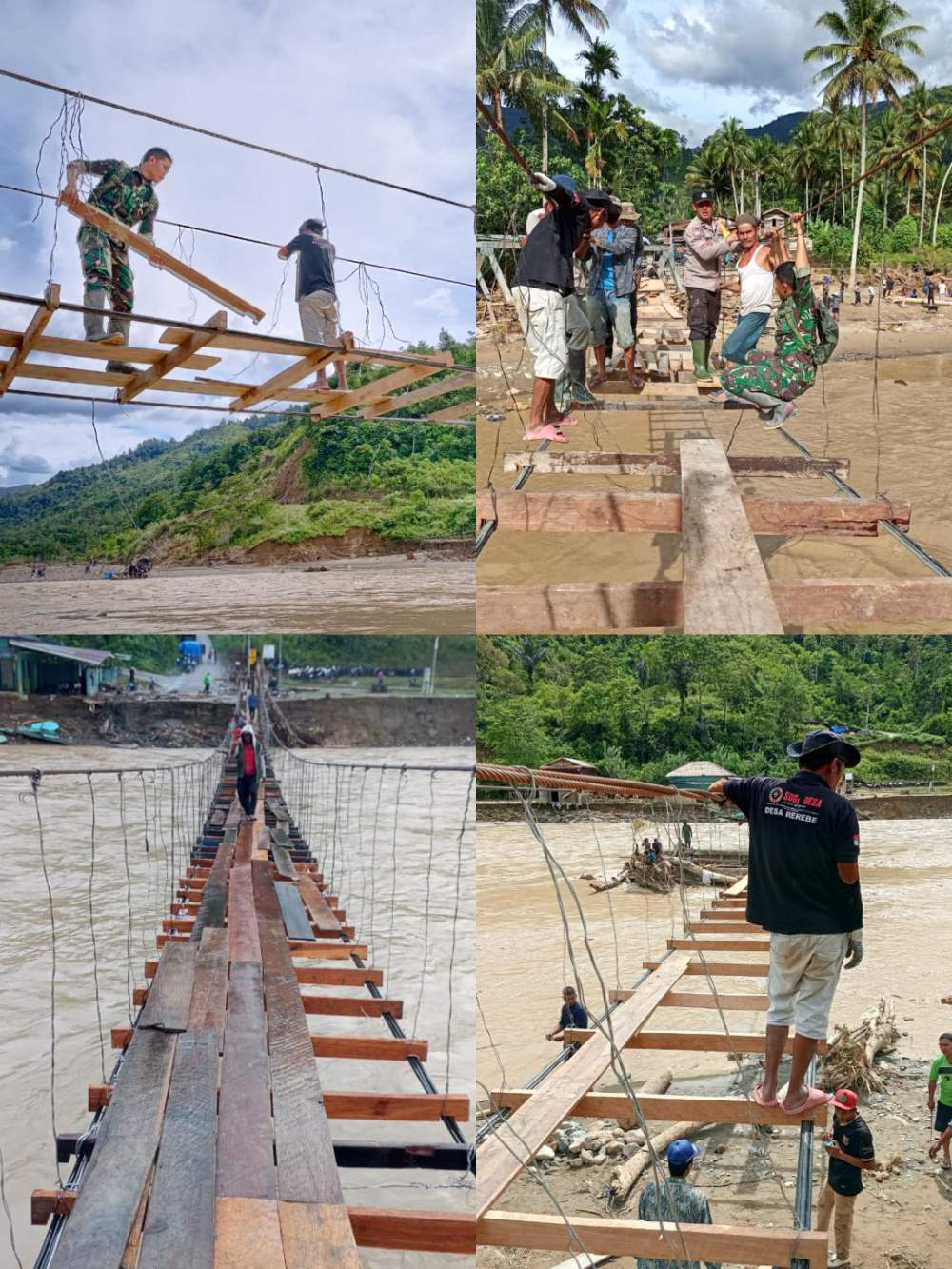 Menghadapi situasi kritis ini, masyarakat secara swadaya dan gotong royong membangun sebuah jembatan tali darurat (Lumpe).