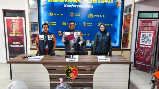 Hal ini disampaikan Kapolres Kampar AKBP Boby Putra Ramadhan bersama Kasat Reskrim AKP Gian Wiatma Jonimandala dan Kasi Humas IPTU Rekmusnita saat konferensi pers di Mapolres Kampar.