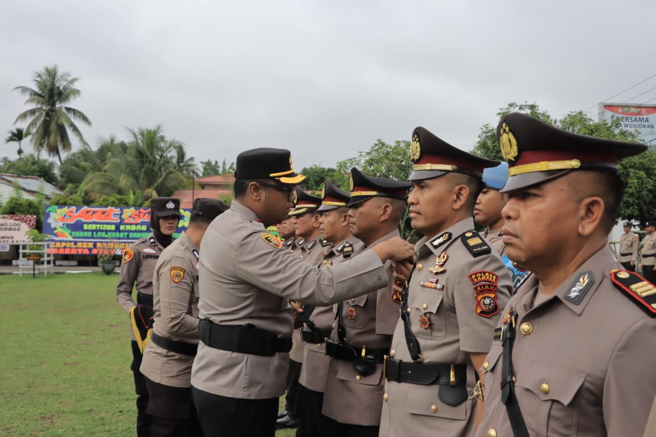 Kepada Kompol Amru Hutahuruk yang menjabat sebagai Kabag Ops, AKP Dadan Wardan Sulia yang menjabat sebagai Kabag Log, Akp Alfajri, yang menjabat sebagai Kasat Samapta, Iptu Nanang Pujiono, yang menjabat sebagai Kasat Binmas, saya ucapkan selamat atas kepercayaan yang diberikan oleh pimpinan kepada saudara. Agar segera menyesuaikan dengan dinamika kerja yang baru, ciptakan terobosan kreatif, gagasan, ide, dan inovasi ke depan yang lebih maju, dan segera lakukan pembenahan ke dalam, terutama kinerja seluruh anggota, sehingga ada perubahan yang lebih baik dalam pelaksanaan tugas.
