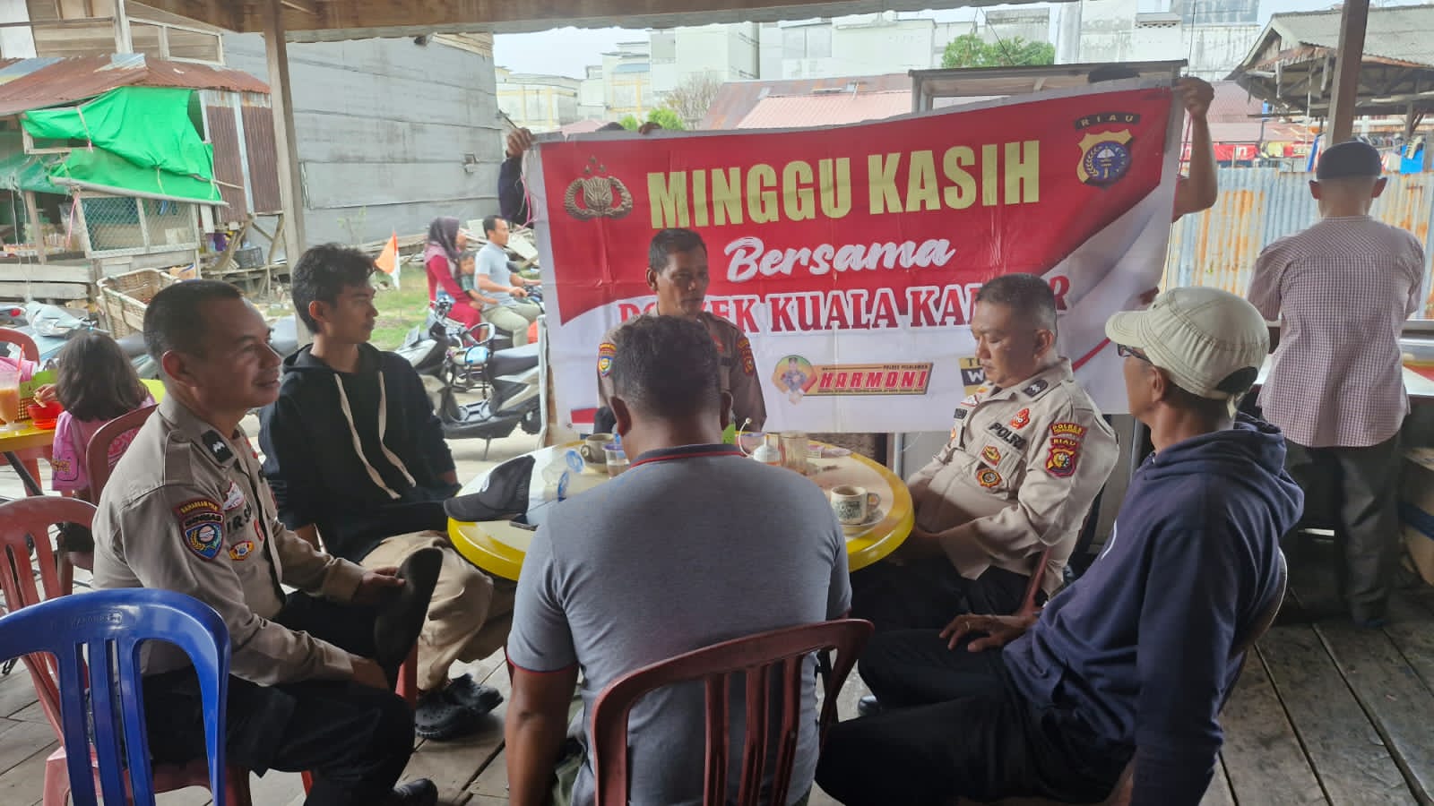 A1news.co.id | RIAU ||Polsek Kuala Kampar Polres Pelalawan menggelar kegiatan Minggu Kasih pada Minggu, 14 Desember 2025, pukul 08.30 WIB di Pasar Minggu, Kelurahan Teluk Dalam. Kegiatan ini dipimpin oleh Ps. Kanit Binmas Polsek Kuala Kampar, AIPDA Ismed Mulyadi, dan diikuti sekitar tujuh personel.