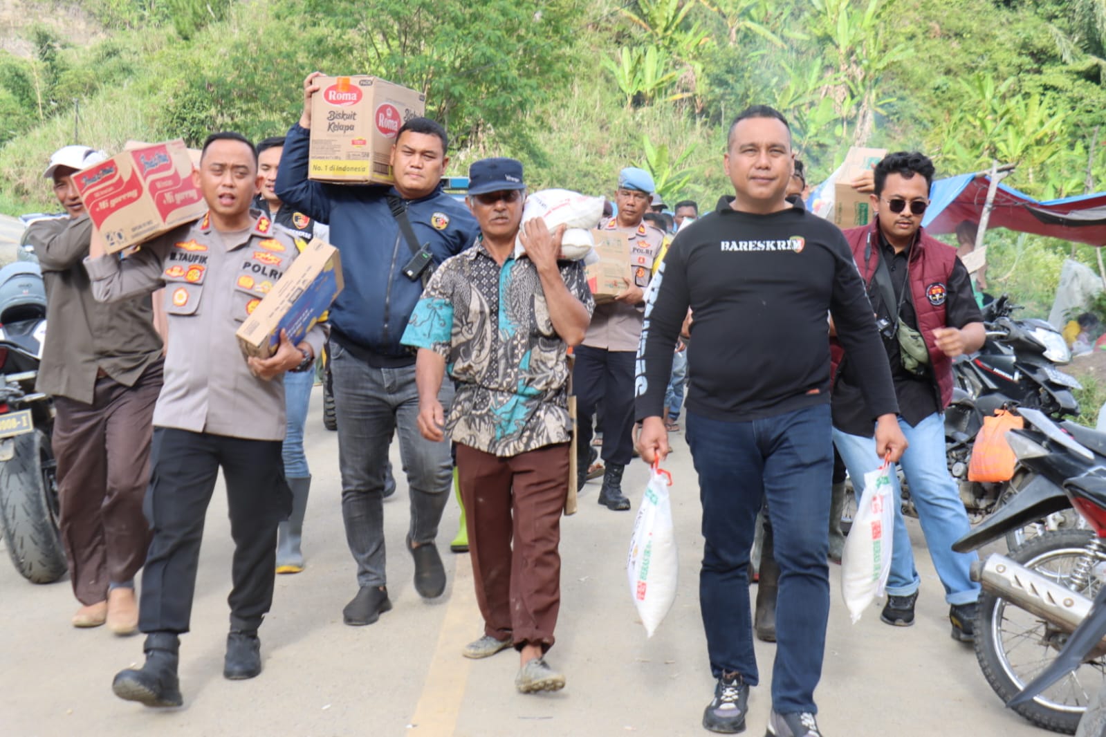 Bantuan disalurkan berupa paket sembako yang terdiri dari beras, mie instan, Pop Mie, ikan sarden, susu, pampers, Super Bubur, roti Promina, berbagai jenis roti, serta kurma untuk memenuhi kebutuhan dasar masyarakat terdampak.
