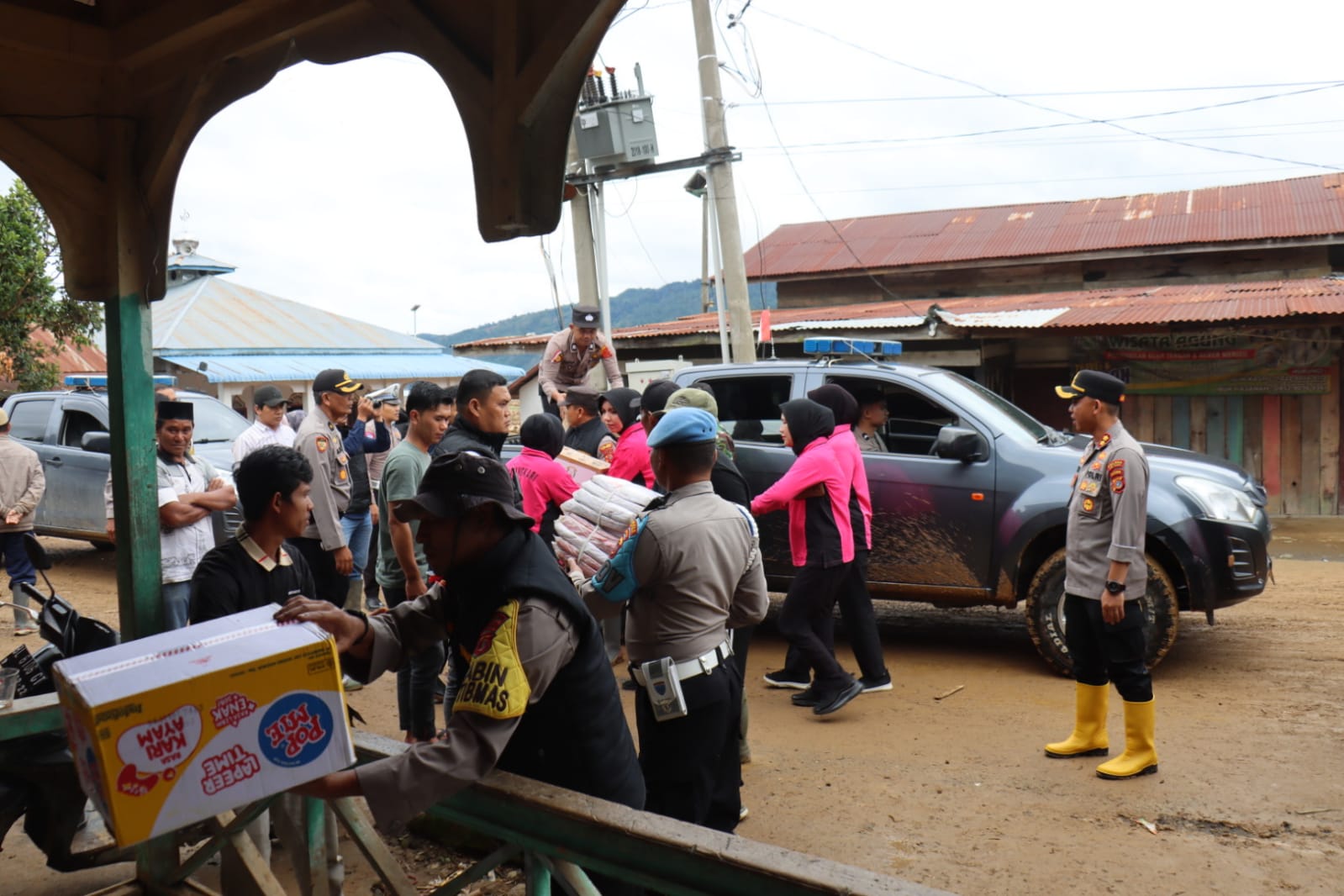 A1news.co.id|Takengon – Kapolres Aceh Tengah AKBP Muhamad Taufiq, S.I.K., M.H., bersama Bhayangkari Cabang Aceh Tengah kembali menyalurkan bantuan kemanusiaan dari Ketua Umum Bhayangkari Ny. Juliati Sigit Prabowo kepada warga terdampak bencana alam di Kabupaten Aceh Tengah, Senin (16/12/2025).