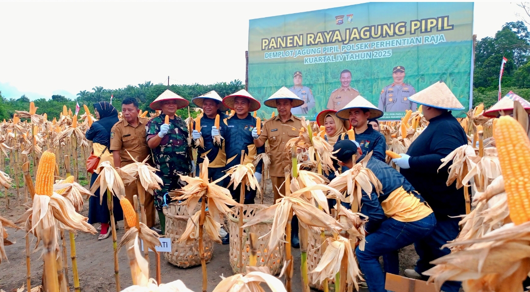 PERHENTIAN RAJA, a1news.co.id– Kepolisian Sektor (Polsek) Perhentian Raja, Kabupaten Kampar, sukses menggelar Panen Raya Jagung Pipil Kuartal IV tahun 2025 sebagai bagian dari inisiatif program Ketahanan Pangan Polri. Acara ini dilaksanakan di lahan demonstrasi (demplot) ketahanan pangan Polsek Perhentian Selasa, 16 Desember 2025, sekitar pukul 09.00 WIB.