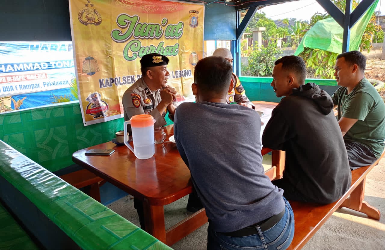 A1news.co.id | RIAU ||Polsek Pangkalan Lesung melaksanakan kegiatan Jumat Curhat pada Jumat (5/12/2025) pukul 10.00 WIB di Kelurahan Pangkalan Lesung, Kecamatan Pangkalan Lesung. Kegiatan ini bertujuan menciptakan suasana sejuk, nyaman, aman, dan kondusif (Cooling System) di wilayah hukum Polsek Pangkalan Lesung.