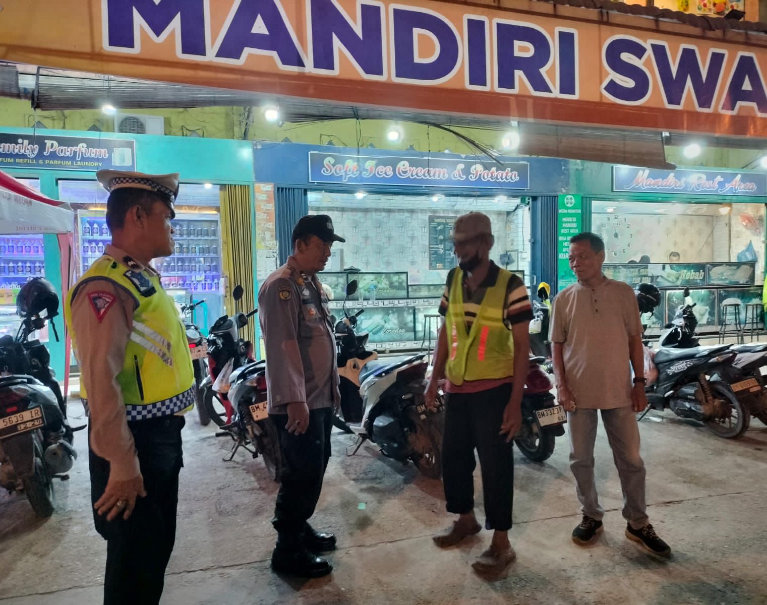 Dalam kegiatan tersebut, personel Polsek Pangkalan Kerinci melakukan pemantauan situasi di sepanjang rute patroli sekaligus menyampaikan imbauan kepada karyawan toko, petugas parkir, dan masyarakat agar tetap waspada terhadap potensi gangguan keamanan.