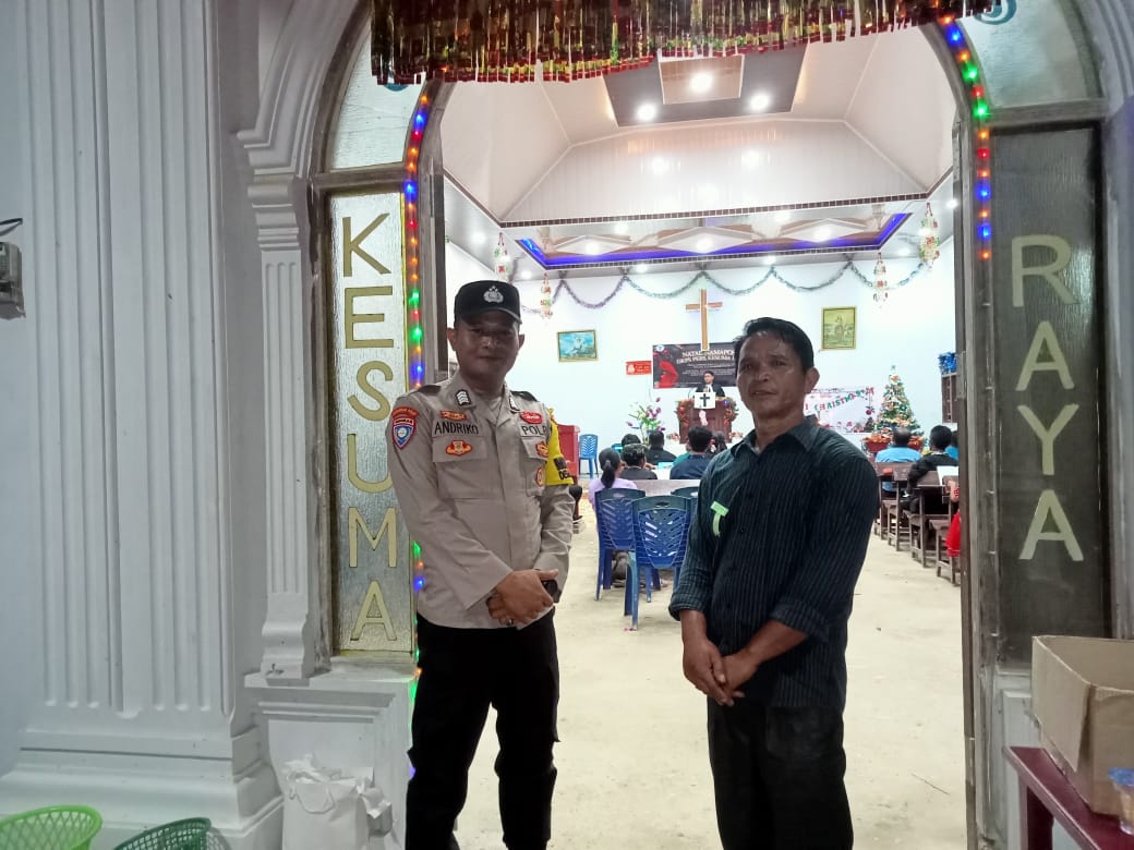 A1news.co.id | RIAU ||Polsek Pangkalan Kuras menggelar pengamanan khusus pada ibadah perayaan Natal muda-mudi di Gereja GKPS Dusun VI Tapui Indah, Desa Kesuma, Kecamatan Pangkalan Kuras, Minggu (21/12) malam.