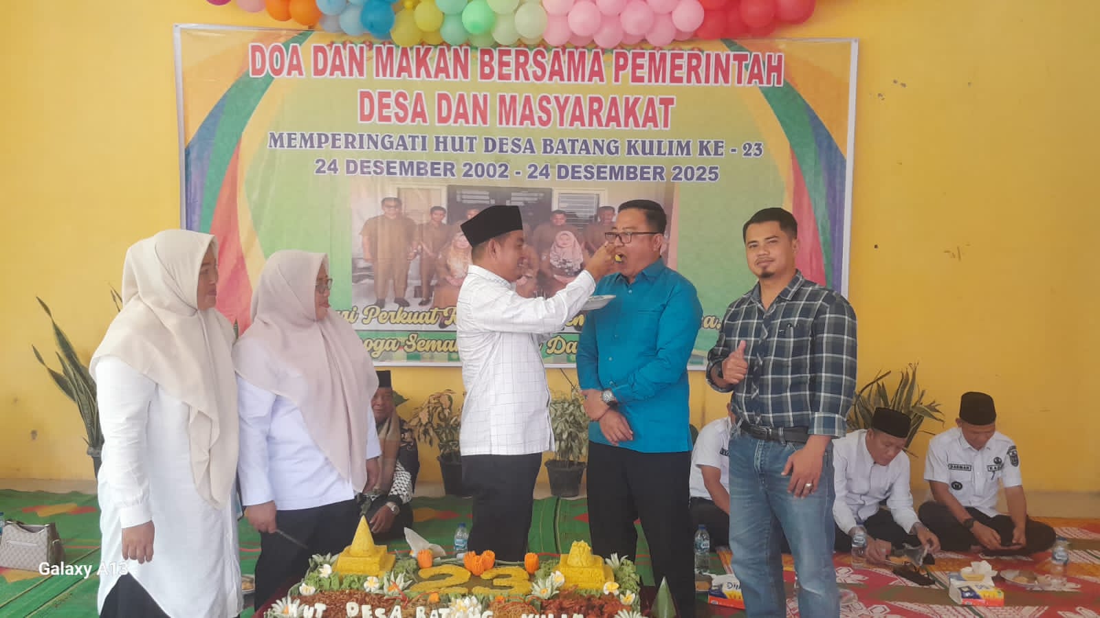 A1news.co.id | RIAU ||Pemerintah Desa Batang Kulim, Kecamatan Pangkalan Kuras, Kabupaten Pelalawan, menggelar makan dan doa bersama dalam rangka memperingati Hari Ulang Tahun (HUT) Desa Batang Kulim ke-23, Rabu (24/12/2025). Kegiatan tersebut menjadi momentum refleksi perjalanan desa sejak dimekarkan dari Kelurahan Sorek Satu.