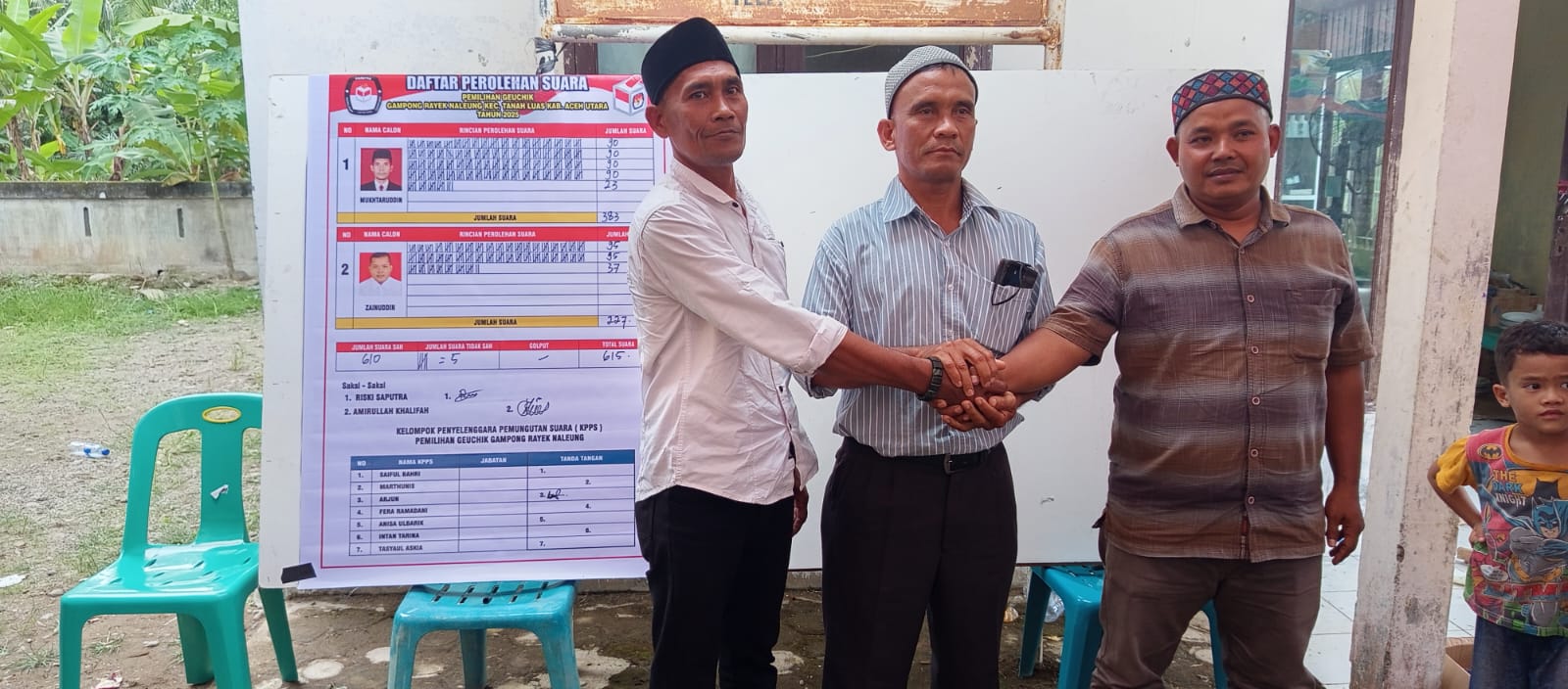 A1news.co.id|Aceh Utara – Pemilihan Geusyik (Kepala Desa) Gampong Rayeuk Naleung, Kecamatan Tanah Luas, Kabupaten Aceh Utara, telah sukses digelar dengan lancar dan damai.