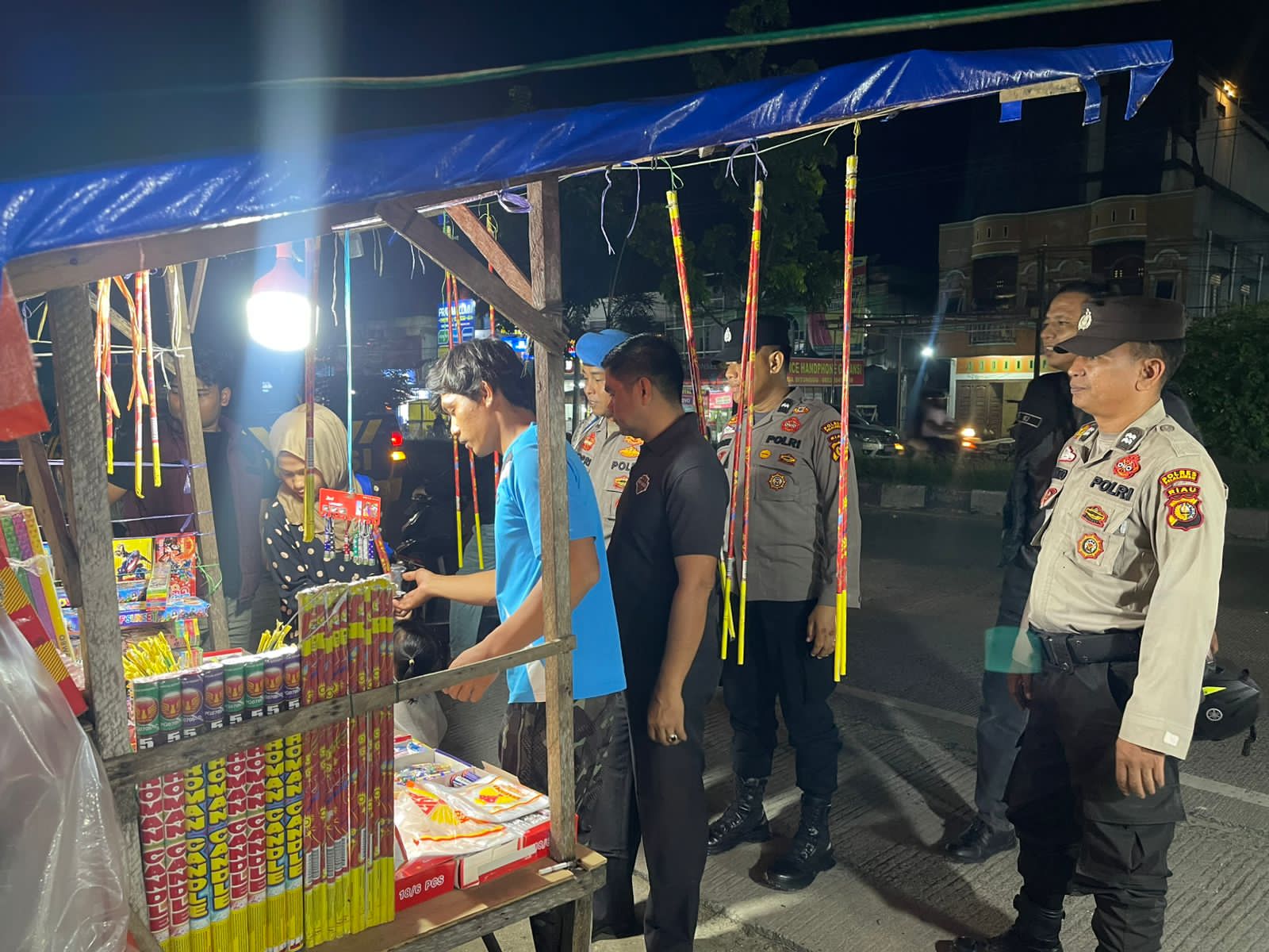 Dari hasil patroli, polisi mengamankan 25 bungkus petasan jenis mercon korek api dari seorang penjual bernama Riko Junaidi, 29 tahun, warga Kampung Melati, Kelurahan Sorek Satu.