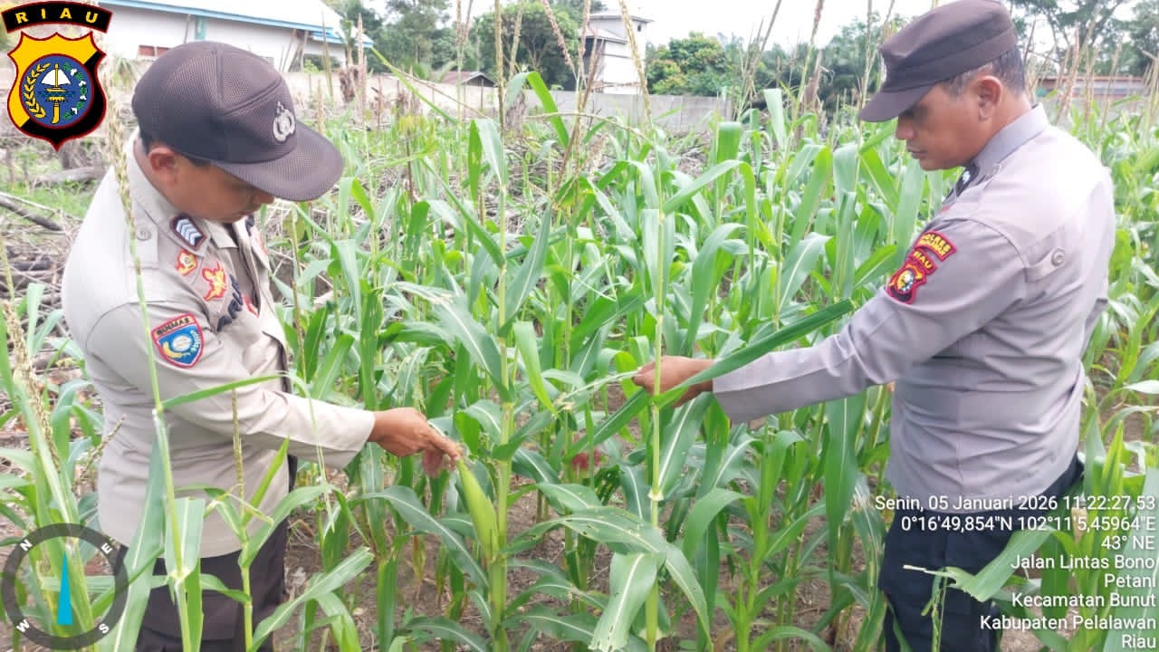 A1news.co.id | RIAU ||Polsek Bunut melaksanakan monitoring perkembangan jagung pipil serentak Kwartal IV di Desa Petani, Kecamatan Bunut, Kabupaten Pelalawan, Senin, 5 Januari 2026. Kegiatan ini merupakan bagian dari dukungan terhadap program ketahanan pangan nasional.