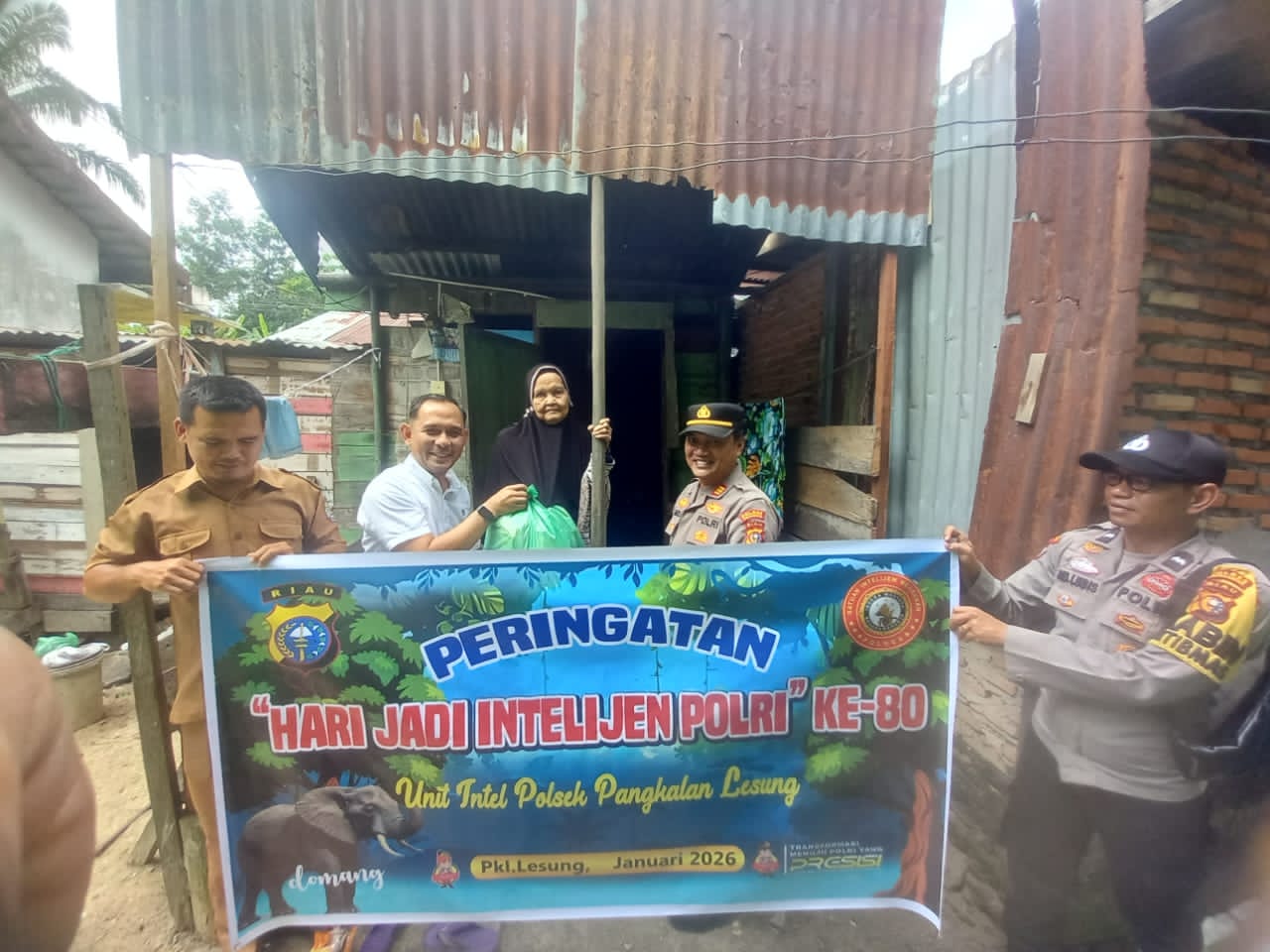 A1news.co.id | RIAU ||Unit Intelkam Polsek Pangkalan Lesung menyalurkan bantuan sosial kepada warga di Kecamatan Pangkalan Lesung, Kabupaten Pelalawan, Riau, Senin, 5 Januari 2026. Kegiatan ini digelar dalam rangka memperingati Hari Jadi Intelijen Polri ke-80.