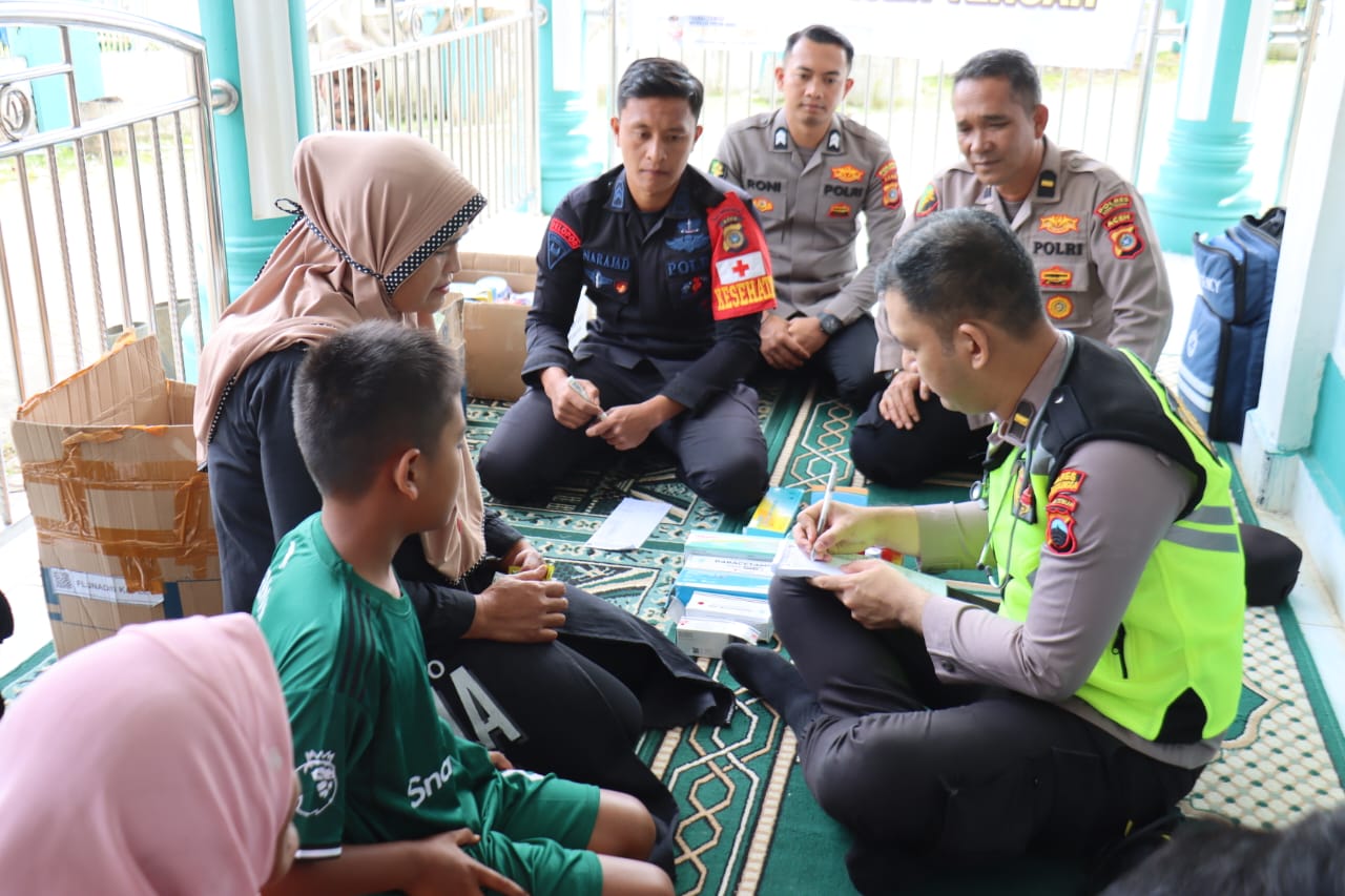 A1news.co.id|Takengon – Kepedulian Polres Aceh Tengah terhadap masyarakat terdampak bencana kembali diwujudkan melalui kegiatan bakti layanan kesehatan serta penyaluran bantuan alat tulis bagi anak-anak di posko pengungsian.