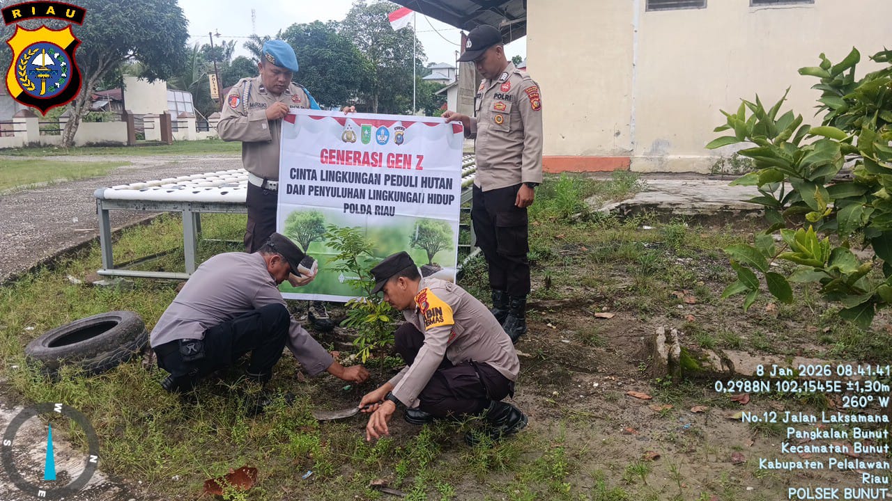 A1news.co.id | RIAU ||Kepolisian Sektor Bunut, Kabupaten Pelalawan, Riau, melaksanakan kegiatan perawatan bibit pohon sebagai bagian dari program penghijauan lingkungan. Kegiatan berlangsung pada Kamis, 8 Januari 2026, pukul 09.00 WIB, di halaman Mapolsek Bunut.