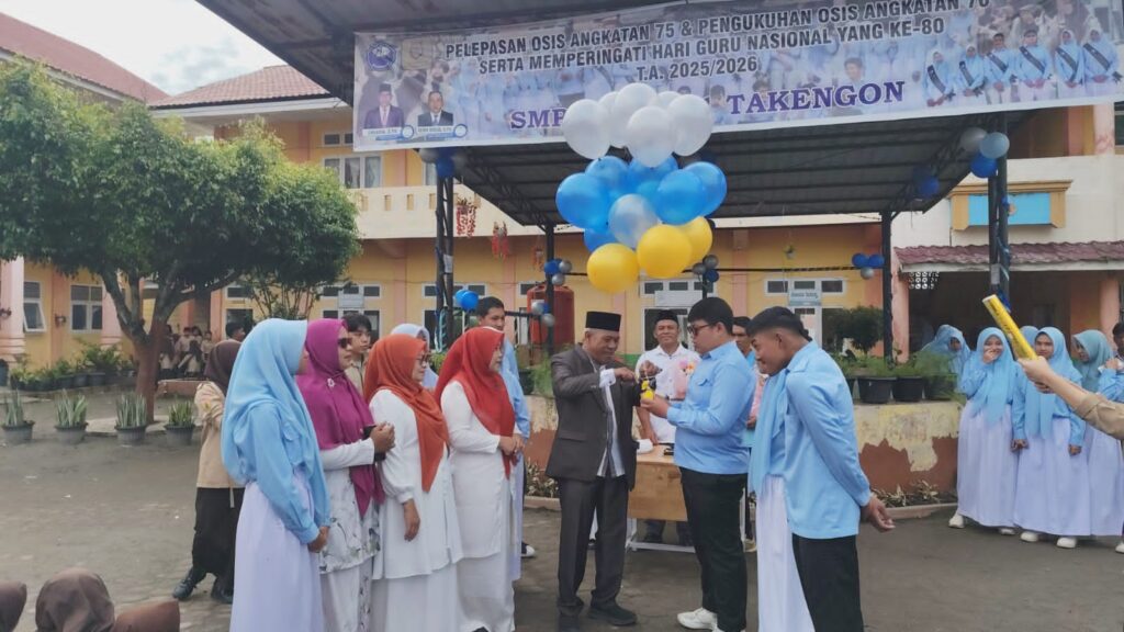 A1news.co.id|Takengon – Pengukuhan Ketua – Wakil Ketua OSIS dan Kader kesehatan SMP Negeri 1 Takengon yang di laksanakan di Halaman sekolah periode 2025 – 2026.