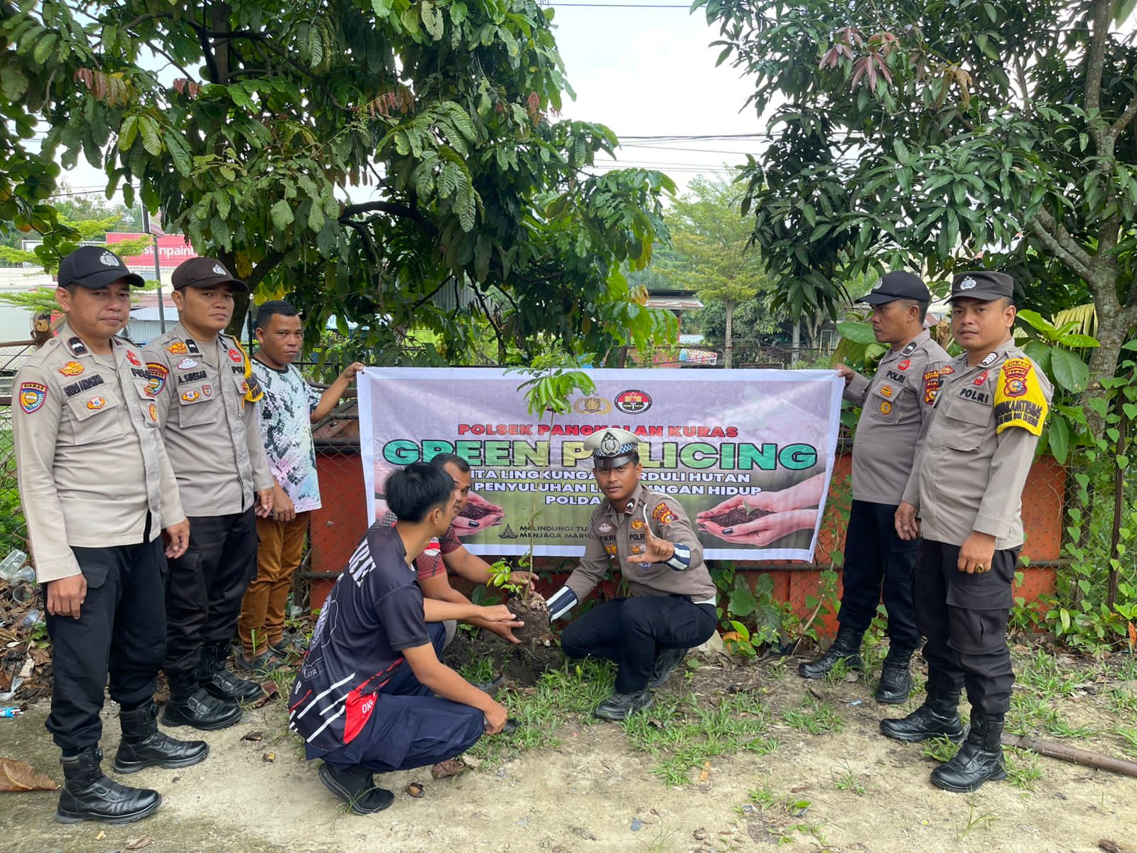 A1news.co.id | RIAU ||Kepolisian Resor (Polres) Pelalawan melalui Polsek Pangkalan Kuras melaksanakan kegiatan penanaman bibit pohon buah sebagai bagian dari program penghijauan dan dukungan terhadap kebijakan Green Policing yang dicanangkan Polda Riau.