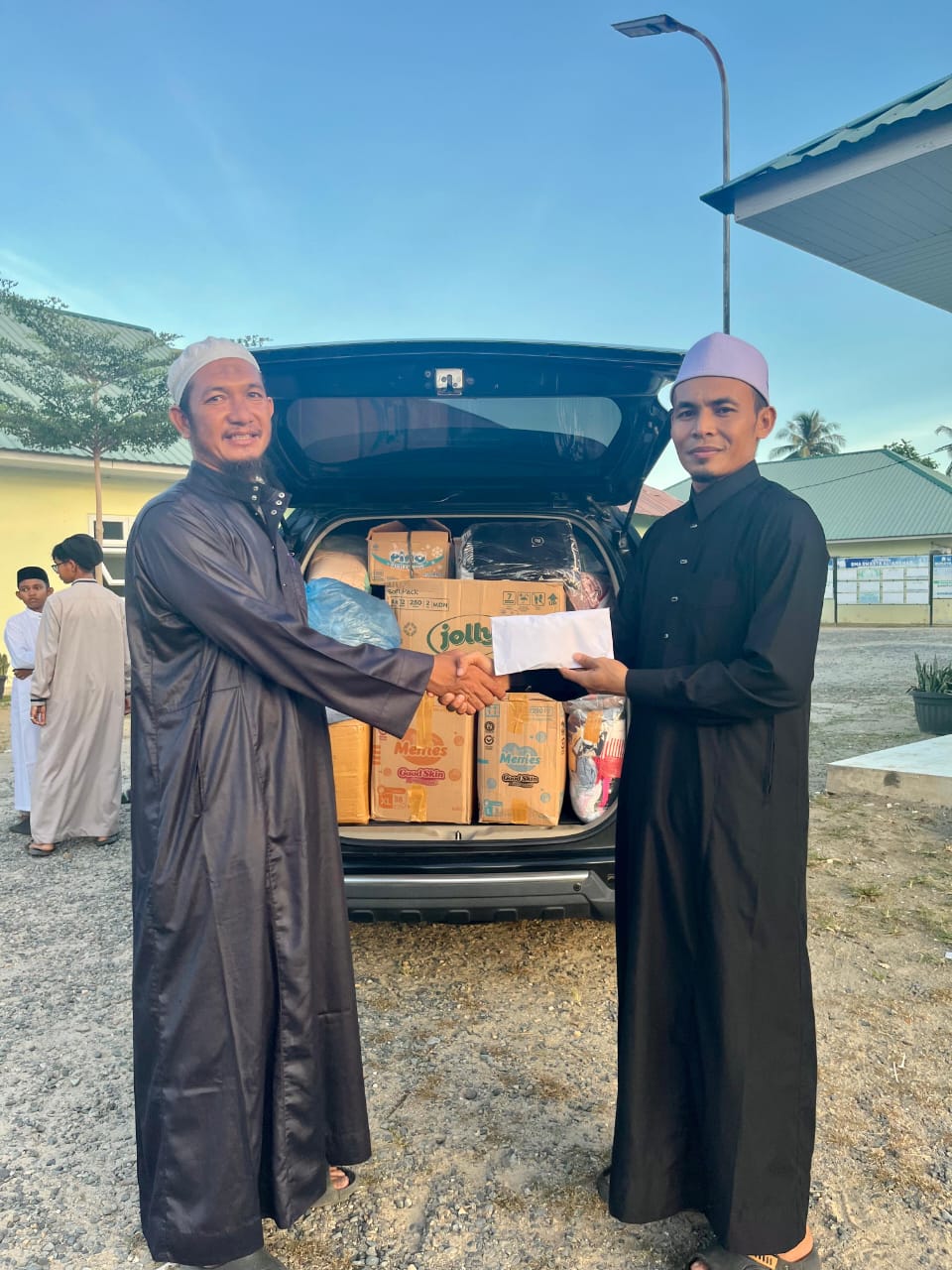 Ustadz Herman menyampaikan donasi ini hasil sumbangan dari para santri, wali santri dan Dewan Guru Dayah Al-Anshar dengan donasi yang kami berikan kepada saudara saudara kami yang terdampak musibah ini semoga dapat.
