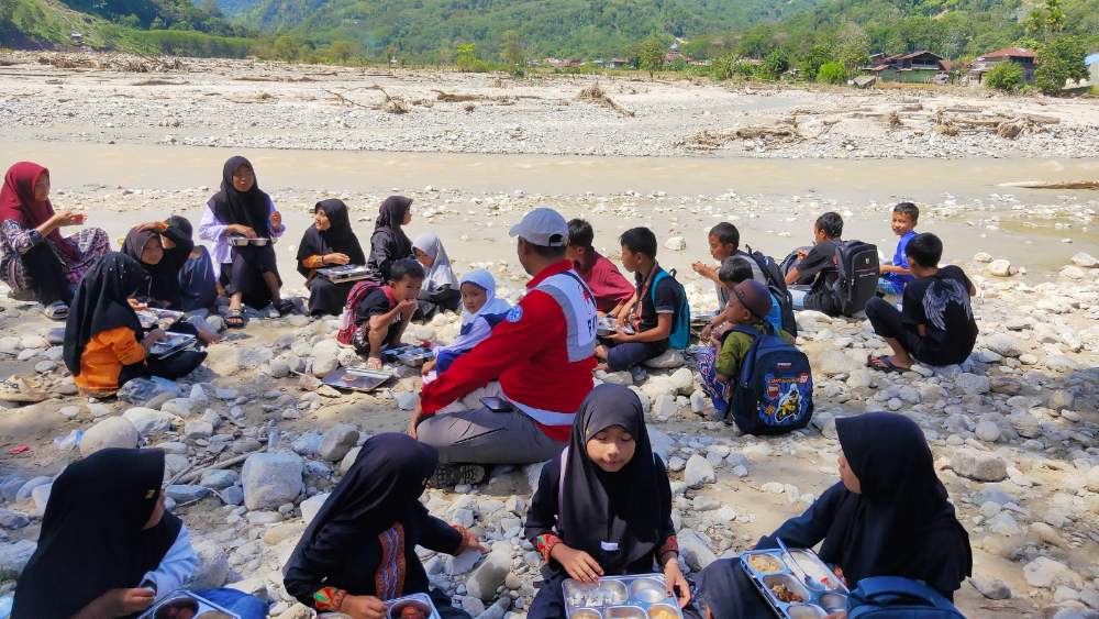 Bersamaan dengan itu, tim psikososial memberikan pendampingan kepada anak-anak penyintas bencana. Mereka tampak antusias mengikuti kegiatan bermain dan bernyanyi. Setelah sesi selesai, anak-anak juga mendapatkan makanan ringan yang telah disiapkan.