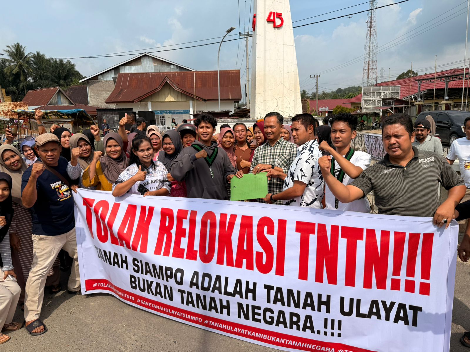 Dalam aksi tersebut, massa menyampaikan beberapa tuntutan, di antaranya menolak secara tegas rencana relokasi warga TNTN ke Kecamatan Cerenti serta meminta agar tidak dilakukan aktivitas pemanenan kebun sampai persoalan sengketa selesai.