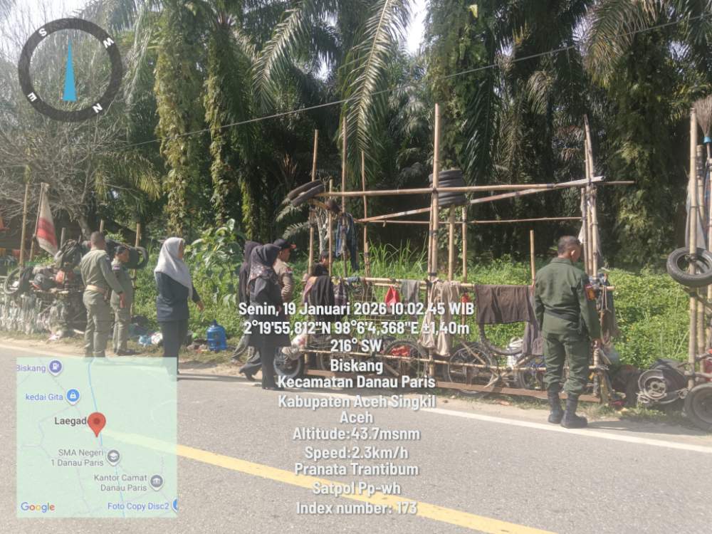 A1news.co.id|Aceh Singkil – Personil Satpol PP dan Wilayatul Hisbah (WH) menggelar aksi penertiban di sejumlah titik di wilayah Kecamatan Danau Paris pada Senin (19/1).