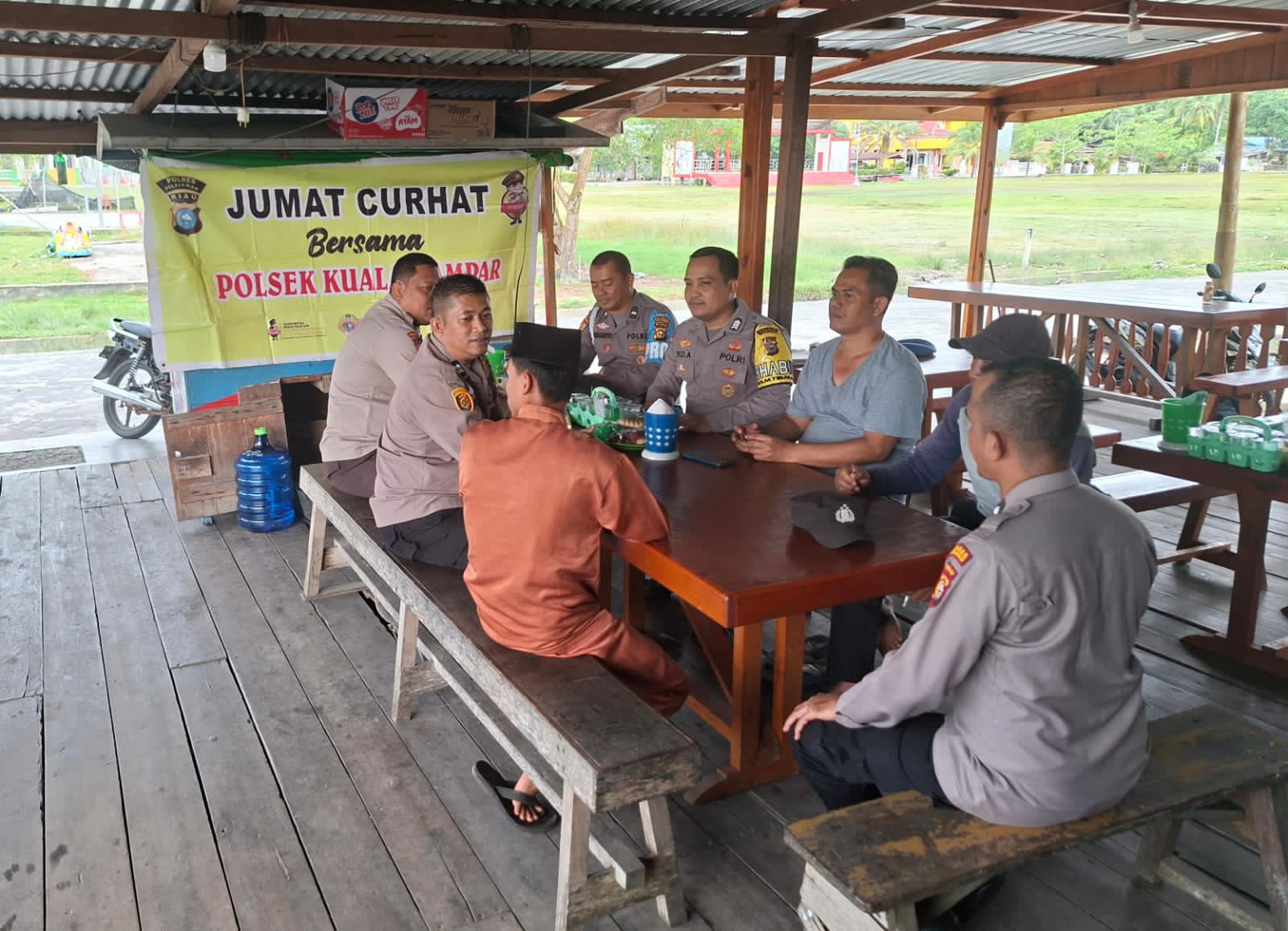 Kegiatan tersebut dipimpin oleh Kepala SPK III Polsek Kuala Kampar, Aipda Yogi Alexander, bersama sejumlah personel Polsek Kuala Kampar. Sekitar enam orang warga setempat hadir dan menyampaikan langsung berbagai persoalan yang mereka hadapi.