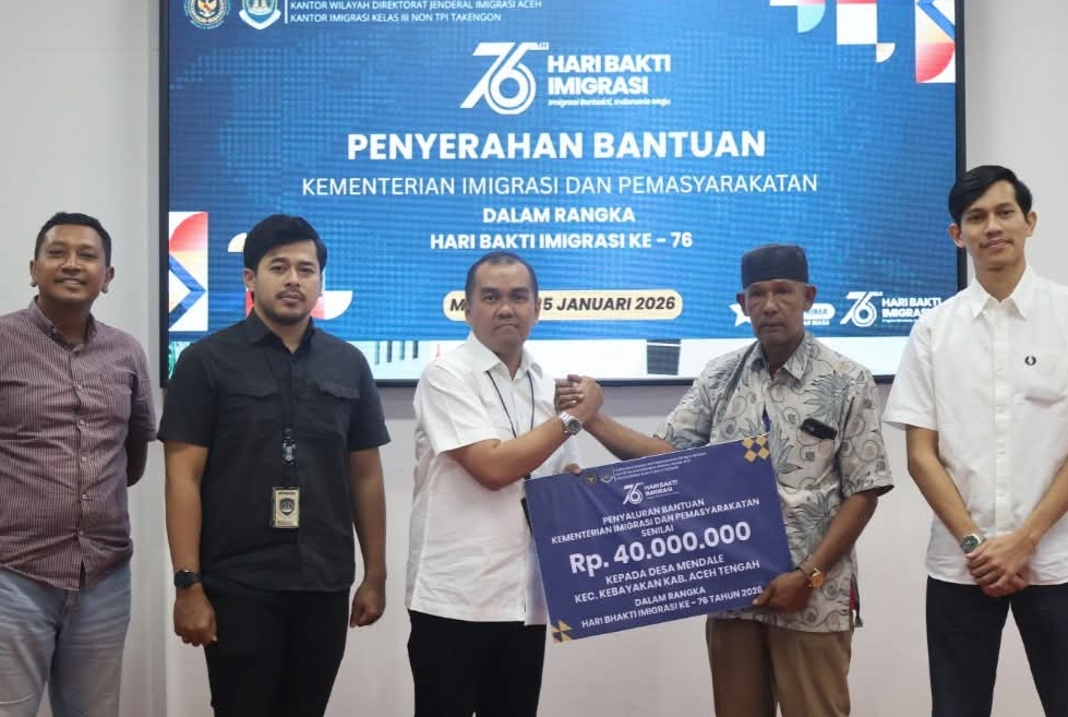 Bantuan diserahkan oleh Kepala Kantor, T. Teguh Abdi, didampingi pejabat struktural kepada masyarakat terdampak di Desa Toweren Uken dan Desa Mendale serta pegawai Kantor Imigrasi Takengon.