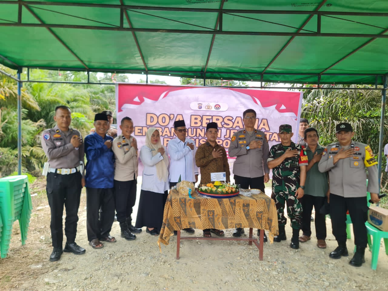 Polsek Pangkalan Kuras Gelar Doa Bersama Sebelum Pembangunan Jembatan Presisi Polri di Kampung Melati
