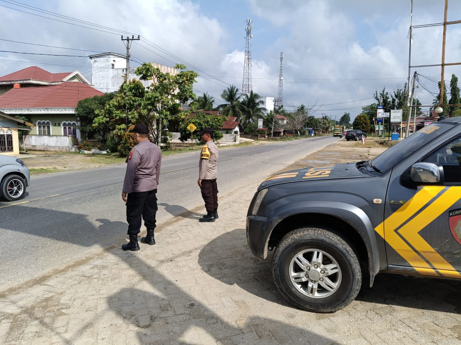 Patroli digelar di Jalan Lintas Timur Kecamatan Pangkalan Lesung, Kabupaten Pelalawan, mulai pukul 10.00 WIB hingga selesai, dengan melibatkan tiga personel yang dipimpin AIPTU Gindo CH, dibantu AIPTU P. Harahap dan AIPDA Indra S.