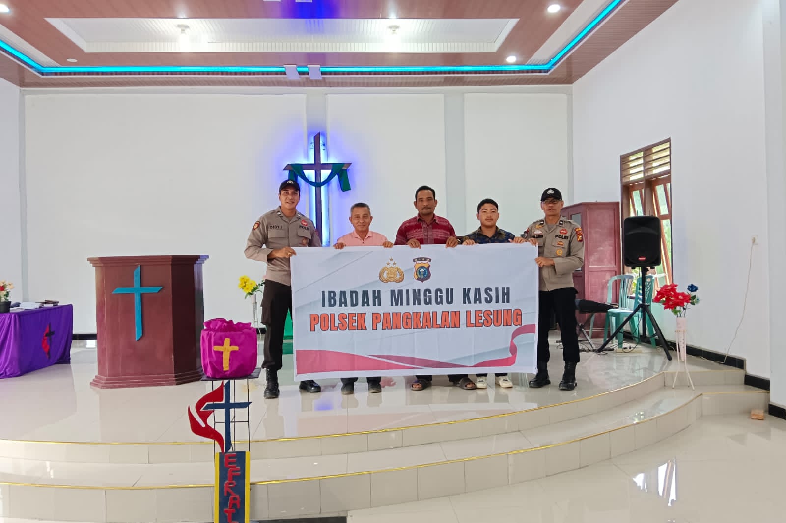 A1news.co.id | RIAU ||Kepolisian Sektor (Polsek) Pangkalan Lesung, Polres Pelalawan, melaksanakan kegiatan Minggu Kasih sebagai bagian dari program Quick Wins Kapolri, Minggu, 1 Februari 2026. Kegiatan tersebut berlangsung di Gereja Methodist Indonesia, Jalan Lintas Timur KM 40, Kelurahan Pangkalan Lesung, Kabupaten Pelalawan.