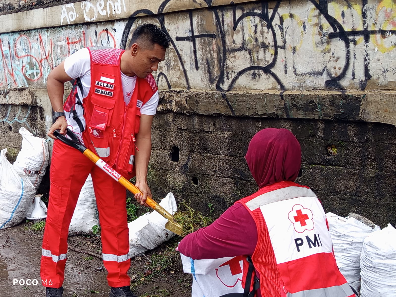 Ketua Umum PMI, Jusuf Kalla, turun langsung bersama relawan dan masyarakat di salah satu lokasi kegiatan, yaitu Pintu Air Cipinang Melayu, Jakarta Timur.
