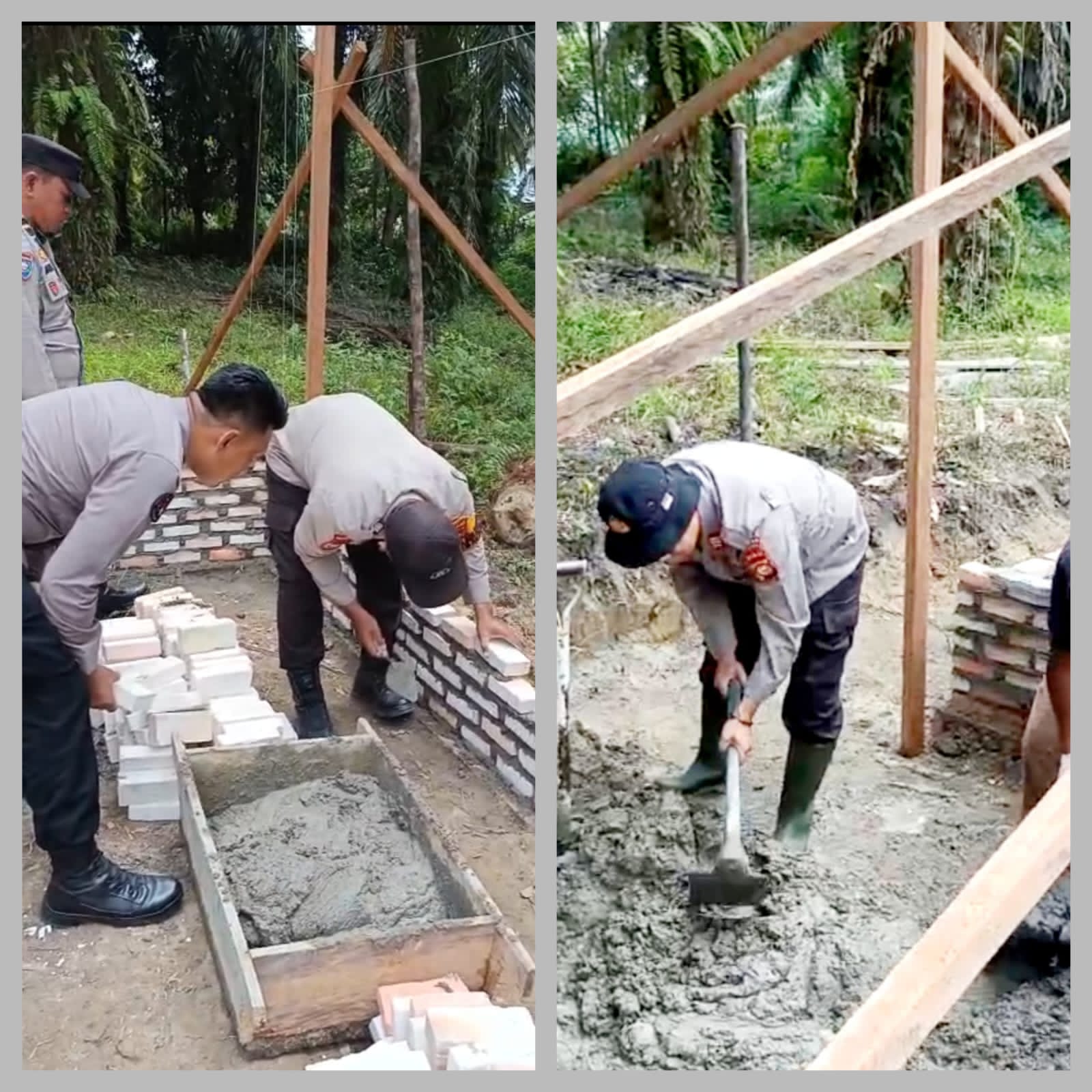 Polisi Gotong Royong Bangun Rumah Layak Huni Bantuan Baznas di Pangkalan Bunut