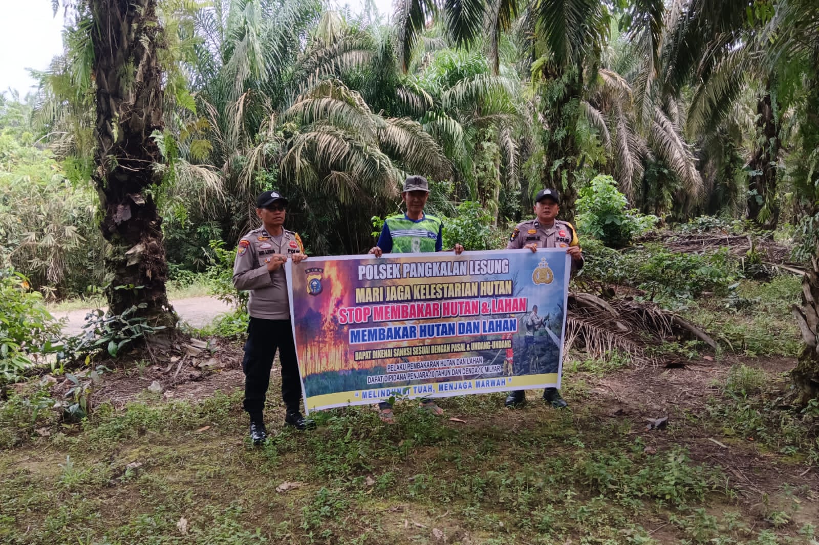Kapolsek Pangkalan Lesung AKP Lambok Hendriko, SH, melalui personelnya menyampaikan imbauan langsung kepada masyarakat agar tidak melakukan pembakaran saat mengolah lahan pertanian maupun perkebunan.