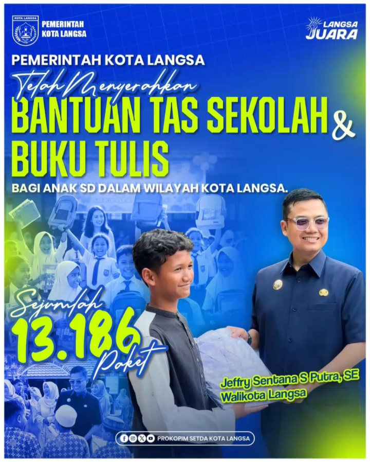 Walikota dan Wakil Walikota Langsa secara bersama-sama menyalurkan 13.186 paket peralatan sekolah berupa tas dan buku tulis kepada siswa-siswi di Kota Langsa, Jumat (13/02/2026). Kegiatan ini merupakan bentuk kepedulian Pemerintah Kota Langsa terhadap dunia pendidikan pascabanjir yang melanda beberapa waktu lalu.
