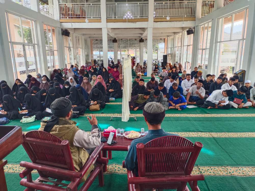 Suasana berlangsung sangat khidmat, di mana para jamaah tampak terpaku menyimak setiap materi yang disampaikan.