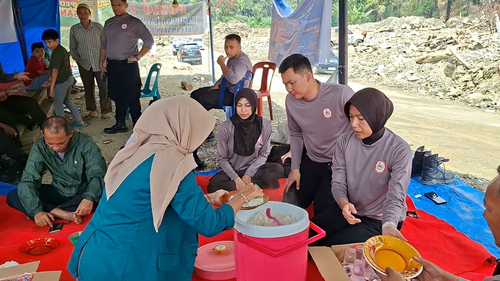 Hidangan yang diolah kemudian disajikan sebagai makan siang bagi masyarakat dan pengungsi yang masih berada di posko.