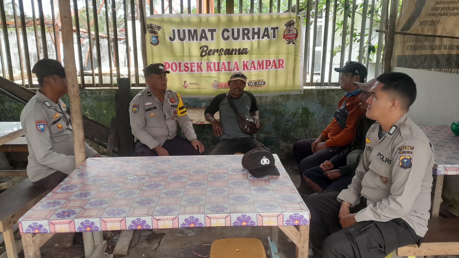 A1news.co.id | RIAU ||Polsek Kuala Kampar kembali menggelar kegiatan Jumat Curhat pada Jumat (20/2/2026) di Warung Uda Awak, Kelurahan Teluk Dalam, Kecamatan Kuala Kampar. Kegiatan yang dimulai pukul 09.00 WIB ini dipimpin langsung oleh Aipda Marzami dan diikuti personel Polsek serta sejumlah warga setempat.