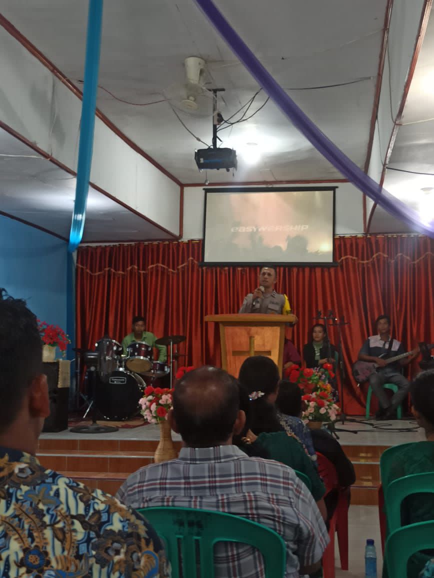 Rangkaian kegiatan diawali dengan pembukaan dan puji-pujian, dilanjutkan khotbah, persembahan, serta warta jemaat. Dalam kesempatan tersebut, Aipda B. Hutagalung juga menyampaikan kata sambutan sekaligus pesan-pesan kamtibmas kepada jemaat yang hadir.