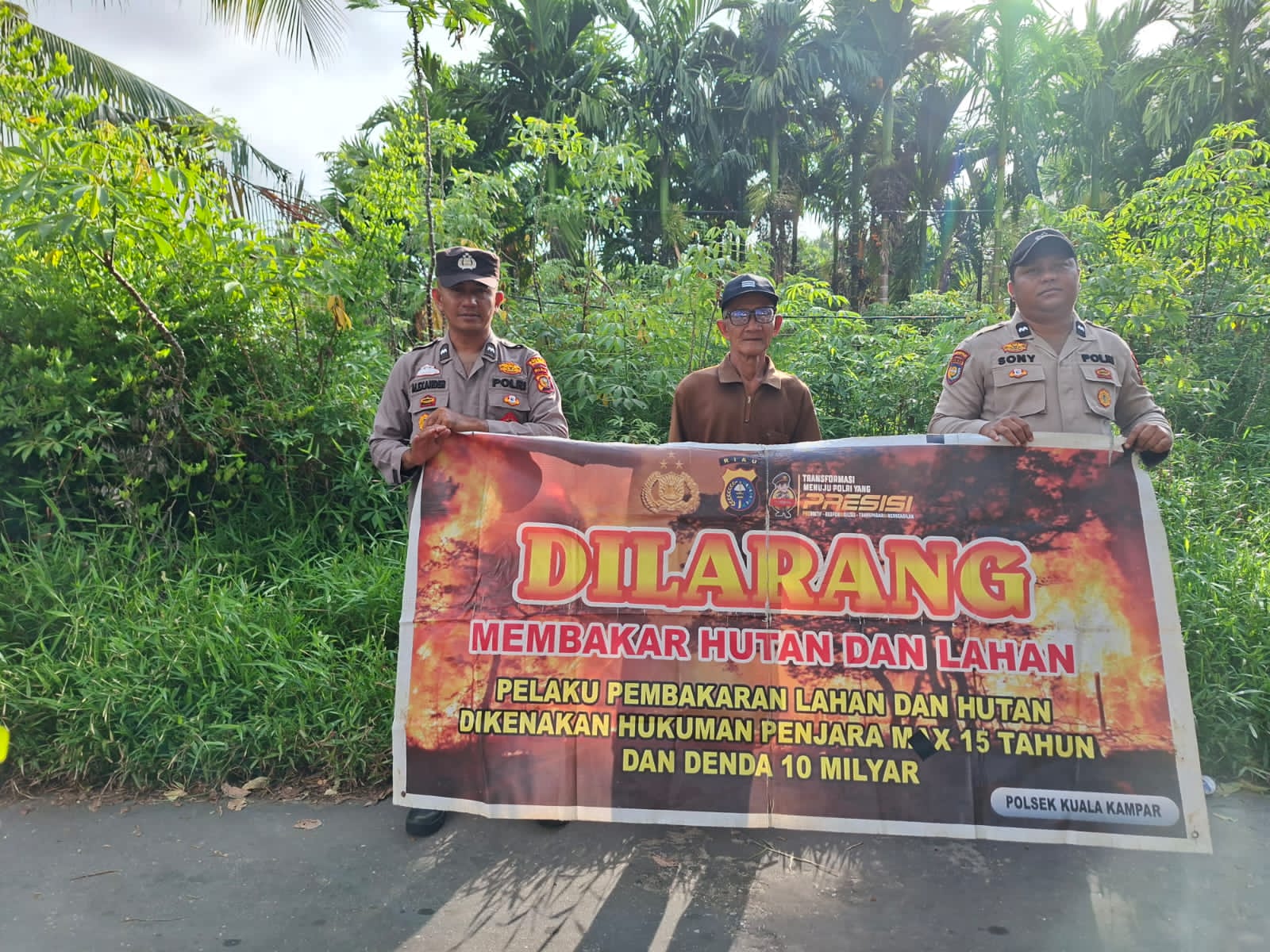 Giat dipimpin oleh Aipda Yogi Alexander bersama personel Polsek Kuala Kampar. Dalam penyampaiannya, petugas menegaskan larangan membuka hutan dan lahan dengan cara membakar sebagaimana tertuang dalam Maklumat Kapolda Riau.