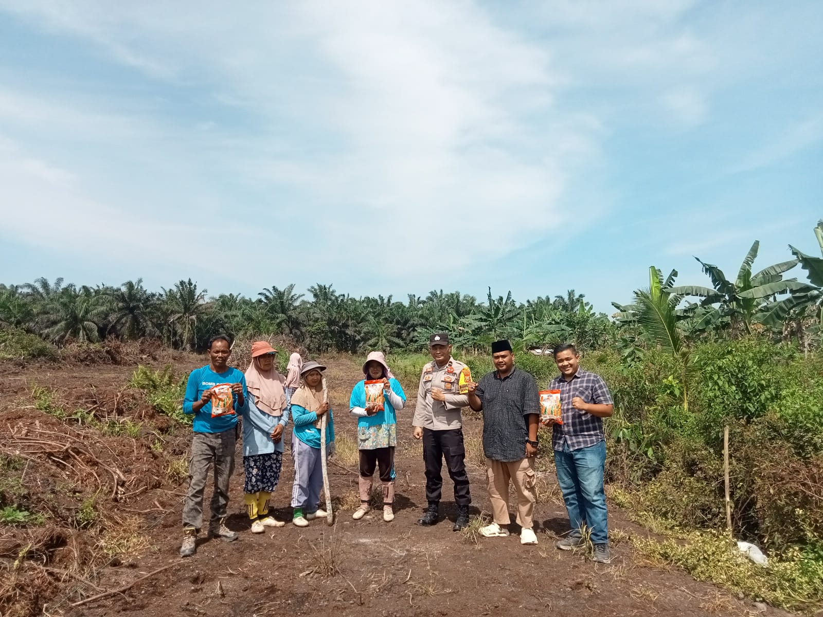 Selain Bhabinkamtibmas Aipda Andriko, kegiatan ini turut dihadiri Kasi Kesejahteraan Rakyat Desa Kesuma Haikal Sandi, pemilik lahan Darman Suriono, serta lima warga desa.