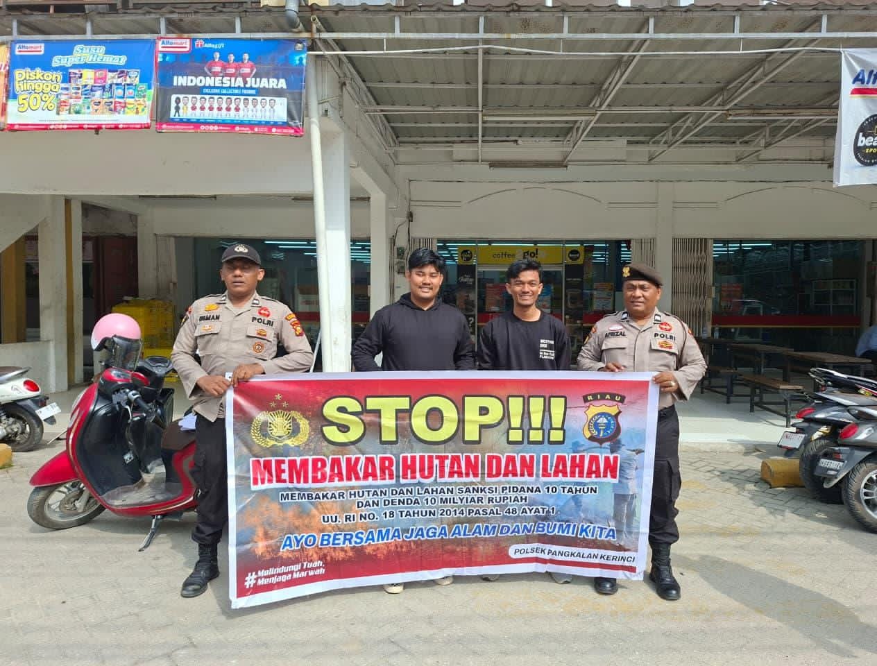 Polsek Pangkalan Kerinci juga mengajak masyarakat segera melaporkan apabila menemukan titik api atau aktivitas pembakaran lahan, guna mencegah kebakaran meluas.